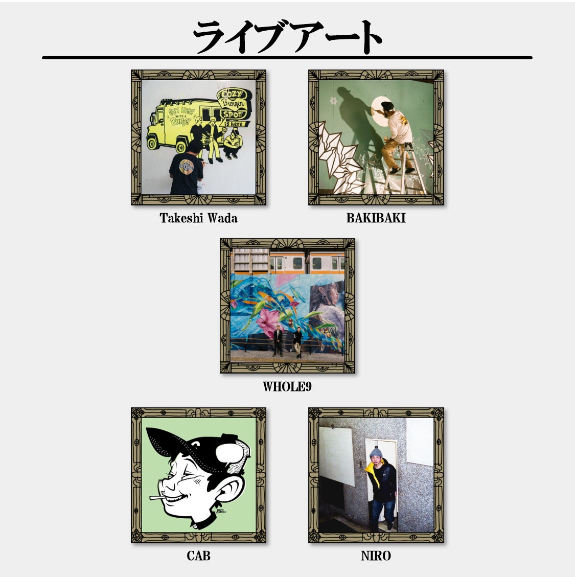 激/SharLee a.k.a POWER PLAY/HALFBY/諸行亭夢常/YOSHI a.k.a VINYL CAT/ratiff(Neibiss)/BREADMAN/KEN-GOLD/やけのはら/サモハンキンポー(思い出野郎Aチーム)/ZEN-LA-ROCK(FNCY)/MIC.B A.K.A 73PIKE SET