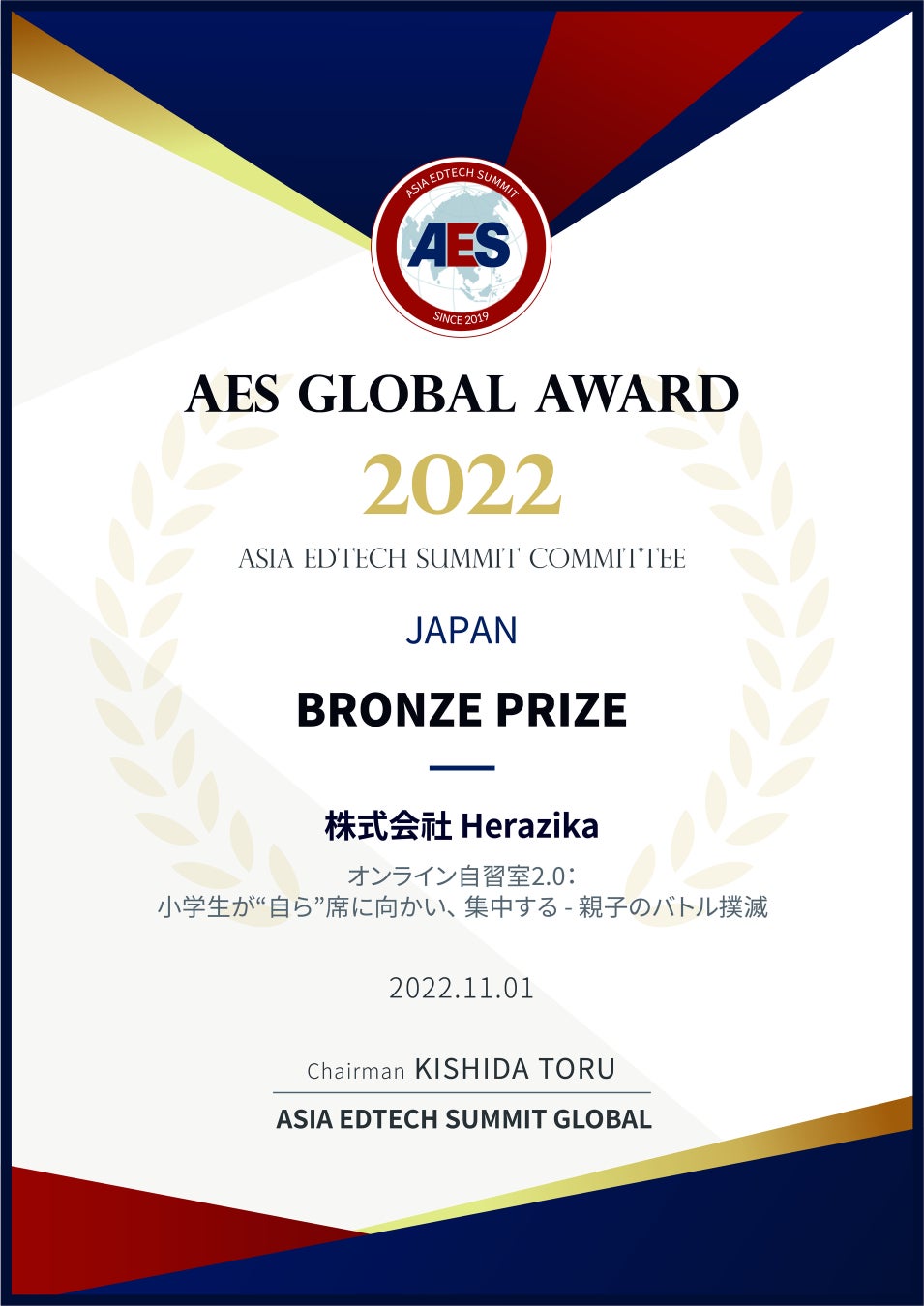 習慣型オンライン自習室「Herazika(小学生版)」がAsia EdTech Summit -Global Award 2022でブロンズ賞を受賞