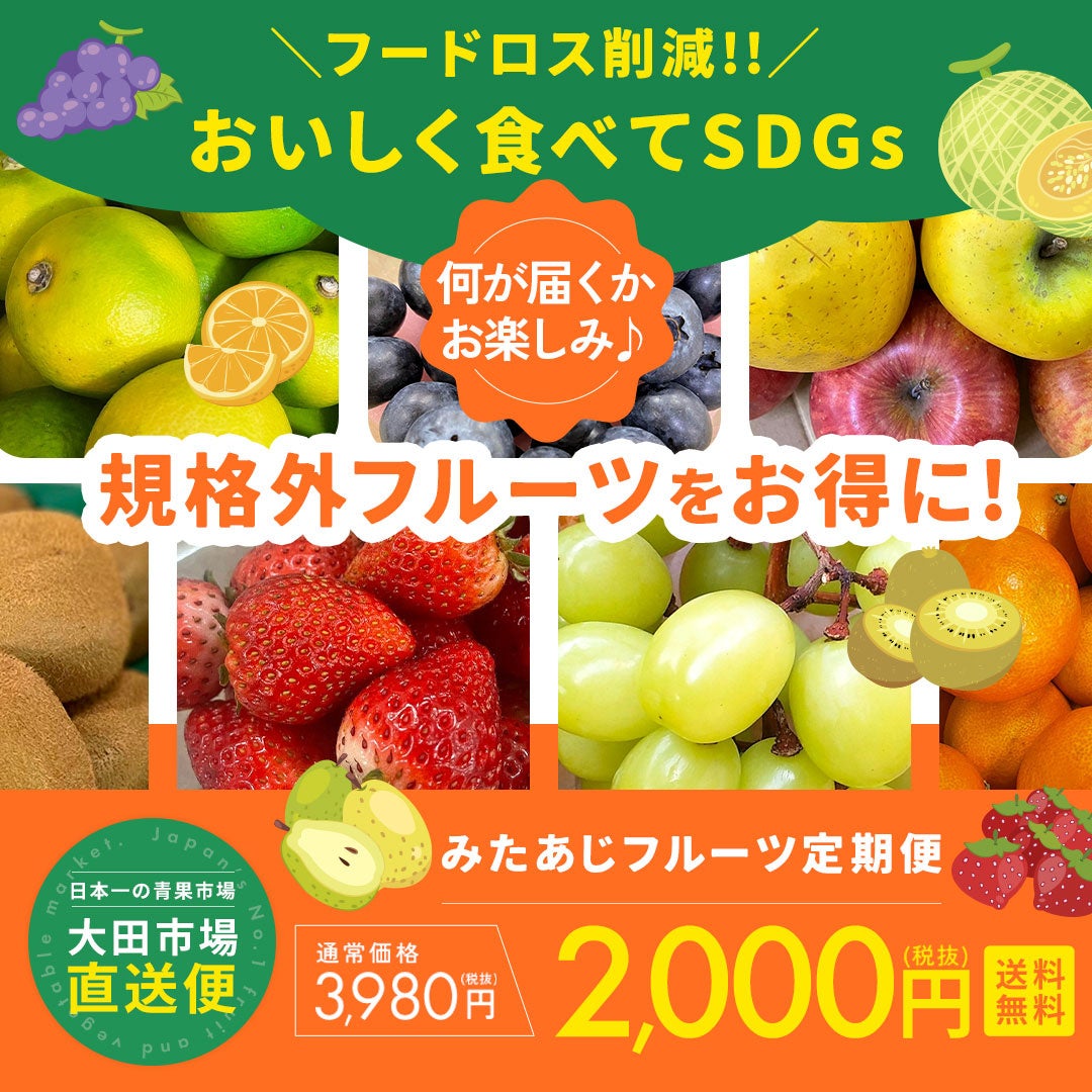 大田市場の青果仲卸であり、東京促成青果株式会社グループの一員である、株式会社サンオオタ(本社:東京都大田区東海三丁目、代表取締役:加藤貴之)が運営する、規格外野菜専門店「みためとあじはちがう店」は、2024年5月9日(木)より、通常よりお手頃な価格で規格外フルーツを体験してもらえるよう通常3,980円を特設ページにて2,000円にて「みたあじ フルーツ定期便」として販売を開始いたします。