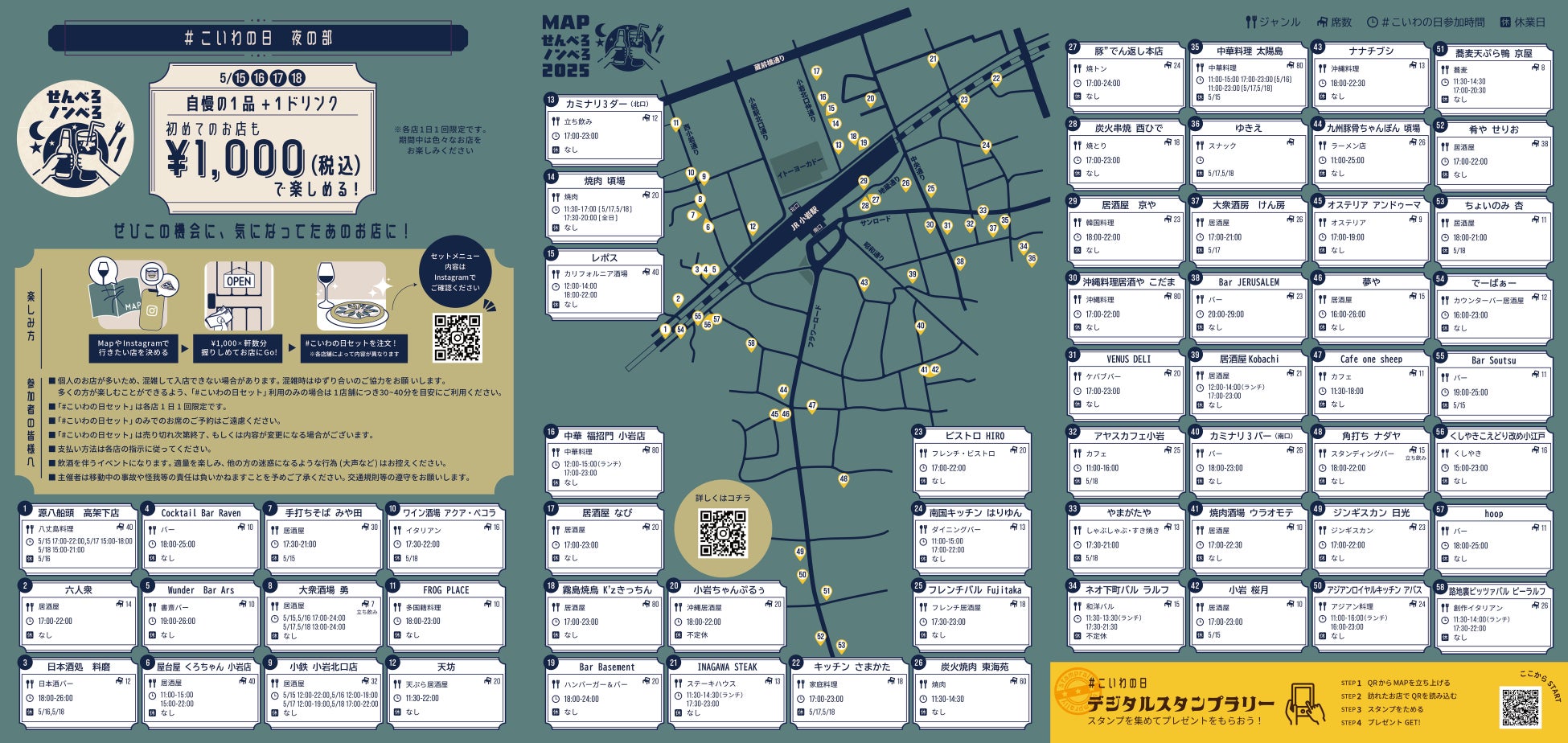 夜の部 総参加店舗58店舗!カフェ〜居酒屋、スナックまで!