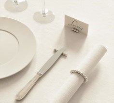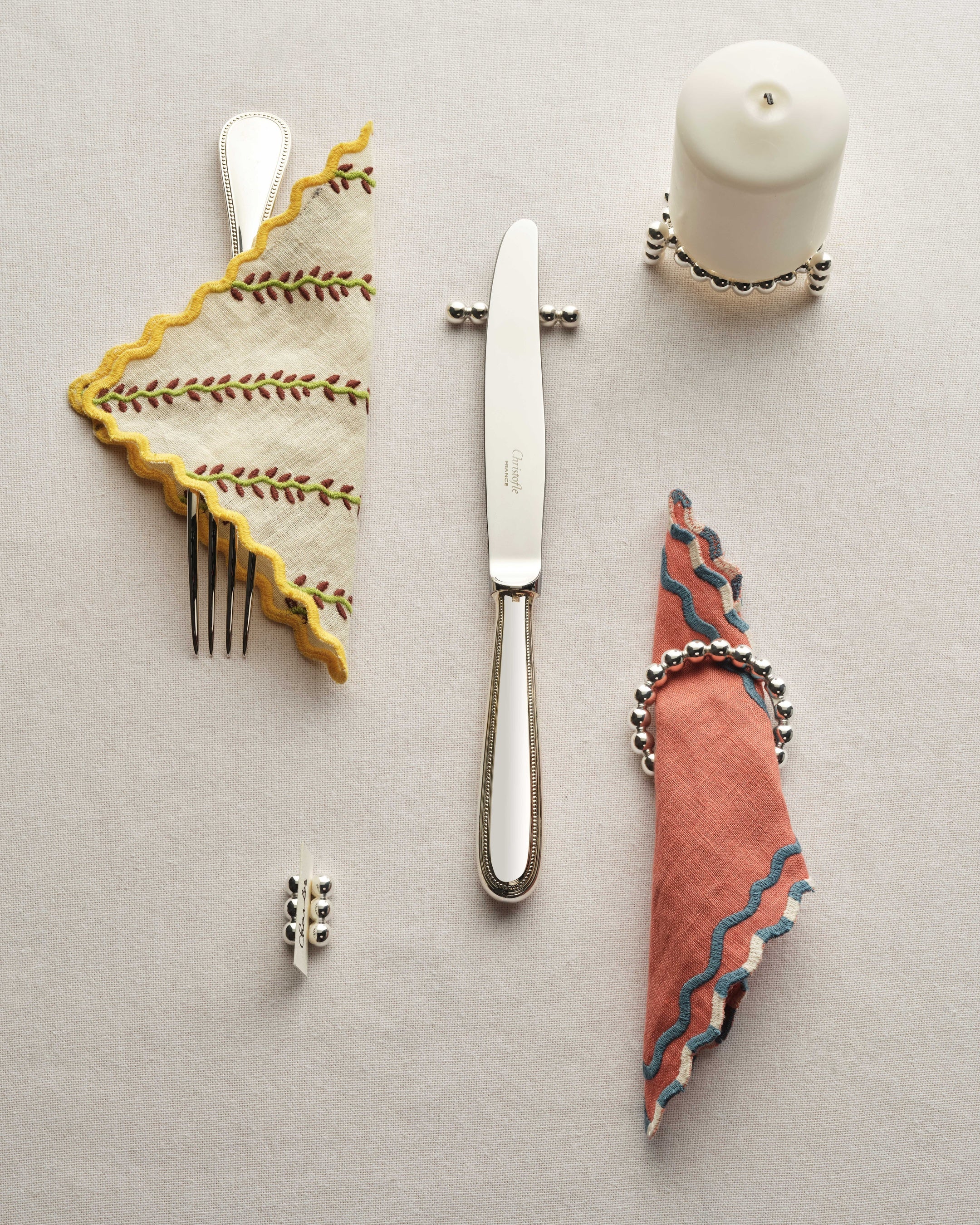 クリストフルでは、同じパールのモチーフのコレクションとして、カトラリー、ホームデコレーション、テーブルウェアアイテムを取り揃え、今回最新作として、ギフトにも最適な卓上の小物アイテムとしてナイフレスト、ナプキンリング、キャンドルジュエリー、そしてカードホルダーなどを発売。