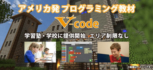 日本国内でのサービス名称は「V-code(ブイコード)」。3月より全国の学習塾や学校に向けて販売が開始される。現在日本で提供されている、マインクラフト*を使った同様のプログラミング教材はエリア制限が設けられている場合が多く、特に大都市や文教地区で新規の導入ができないケースが相次いでいたが、今回イージアが販売する「V-code」はエリア制限を設けないため、今まで導入を断念していた大都市の教育機関などからの引き合いも見込める。