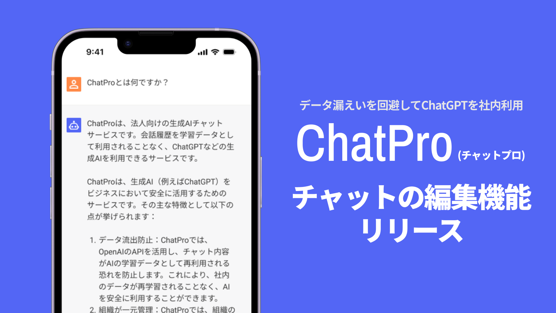 ChatGPT法人利用サービス「ChatPro(チャットプロ)」にチャット編集機能。料金無料のプランでも利用可