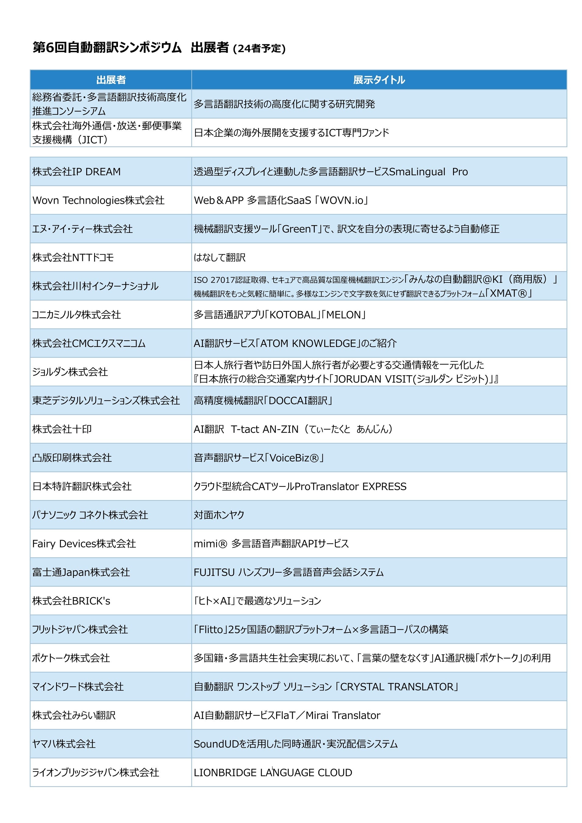 ※最新の同時通訳・自動翻訳システムの展示会を併せて実施します。