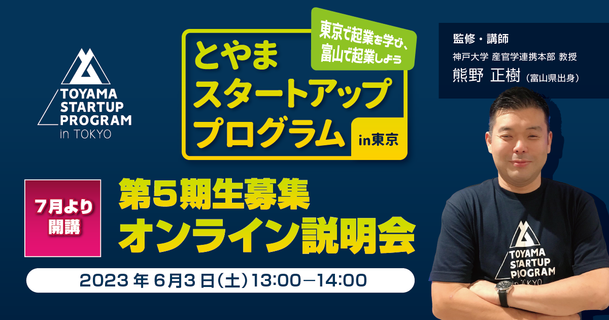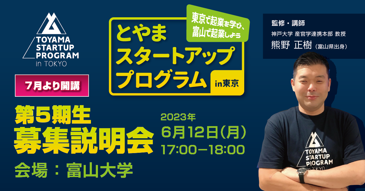 令和5年度「とやまスタートアッププログラム in 東京」第5期生の募集を開始しました。