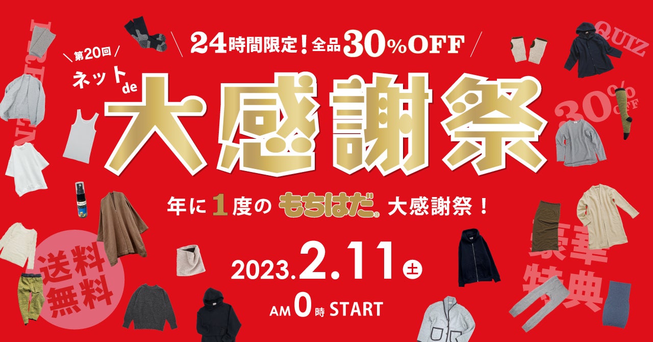 【全品30%OFF】年に1度、24時間限り!もちはだネットde大感謝祭