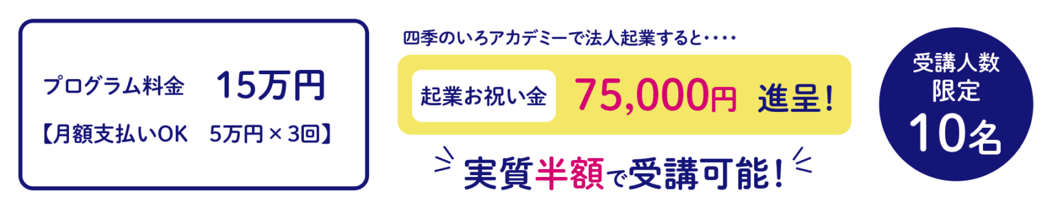 料金:150,000円 ※月額払い可能【例:月々50,000×3回】※分割は3回まで。