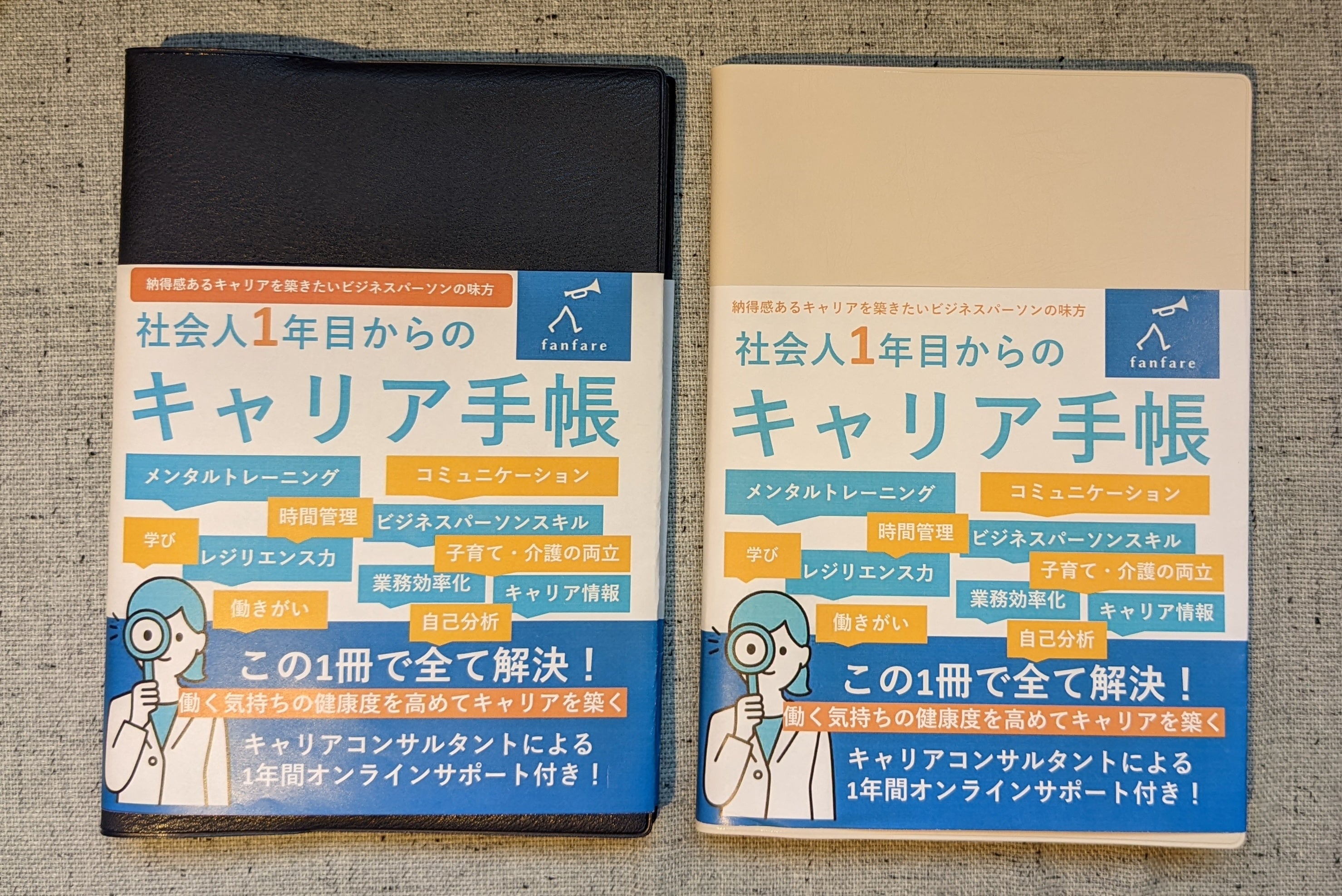 | キャリア手帳 | A5サイズ全224P|2022年4月始まり手帳※FSC認定用紙を使用 表紙カバー:オフホワイトまたはネイビーブラックの2種 |