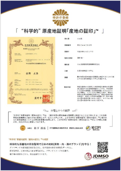国内唯一の“科学的”原産地証明「産地の証印™」サービス開始 日本産ブランドの指紋情報をデジタル化し、産地偽装を防止・検証