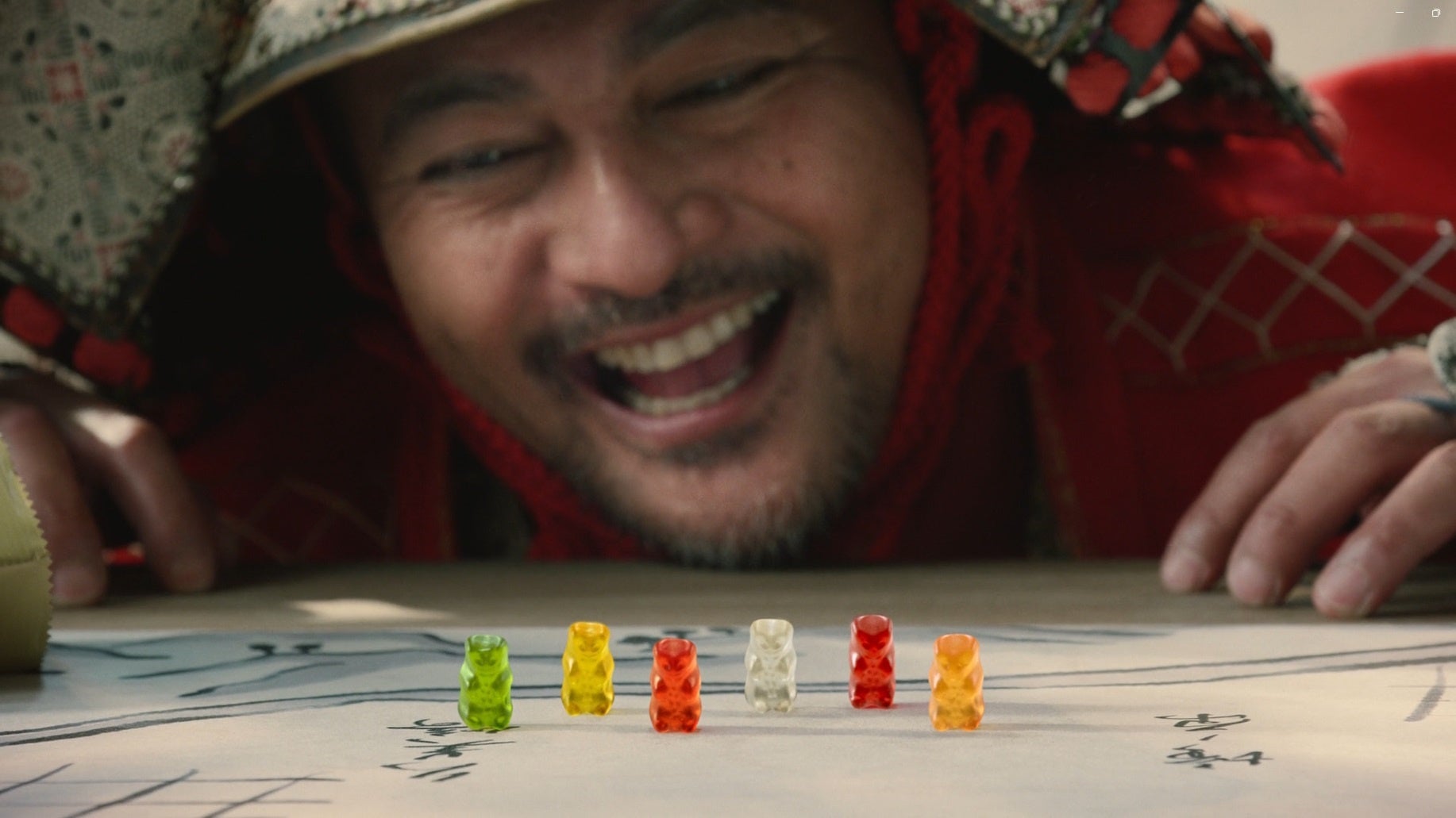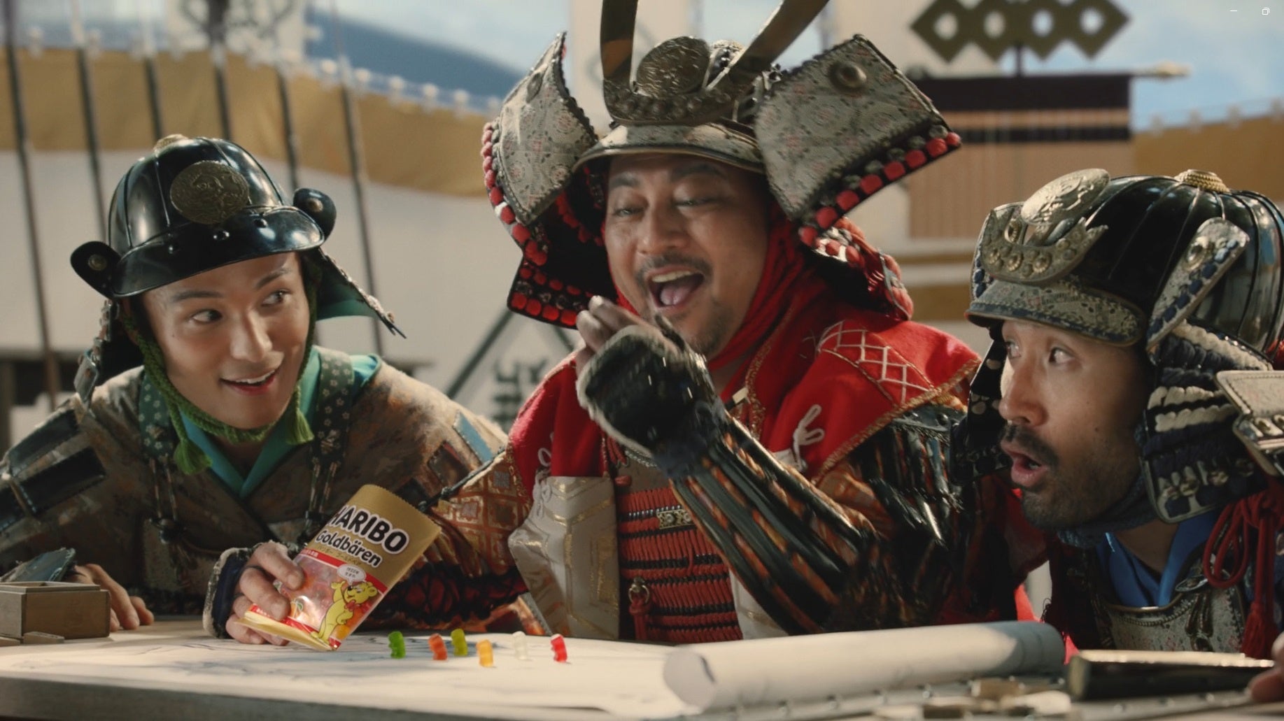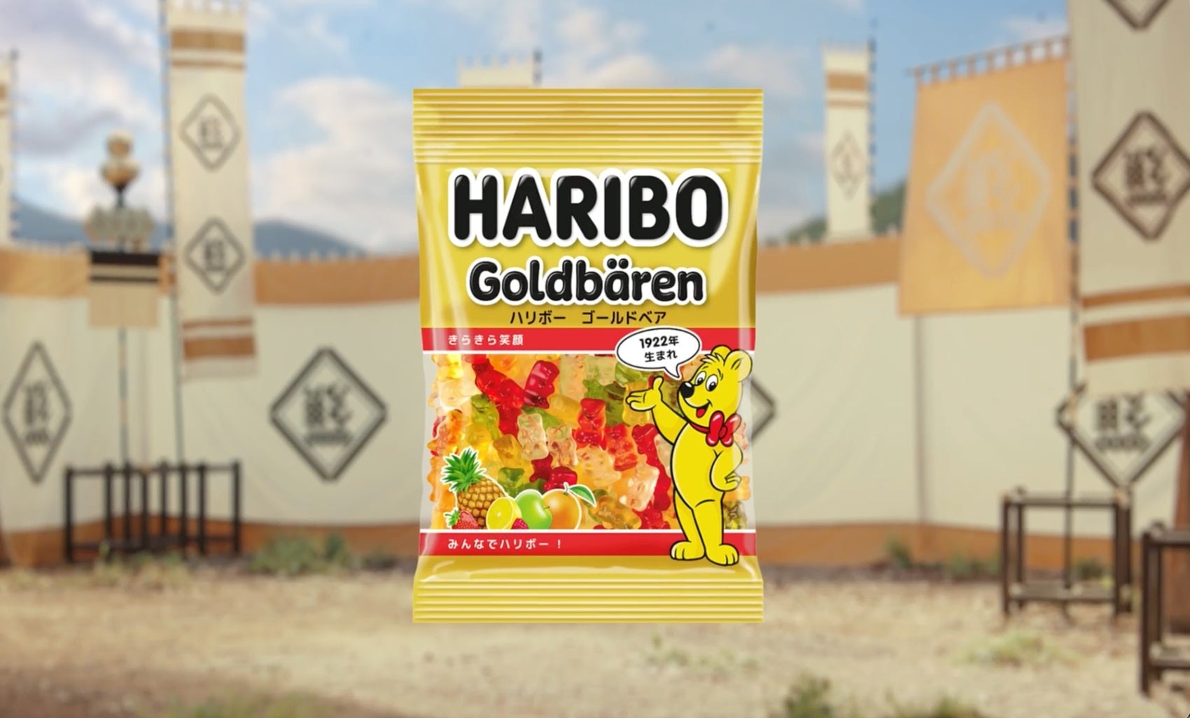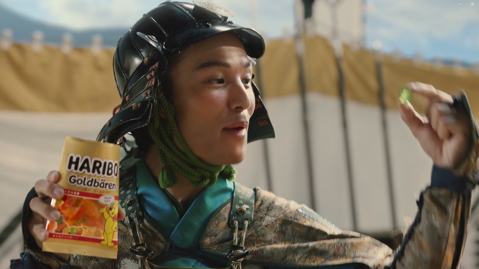 新CMでも、どんな場面であろうとハリボーゴールドベアの袋を開けた瞬間から、幸せで楽しい瞬間がもたらされることを表現しました。ハリボーの「ぷにぷに感」やおいしさで鎧武者がハッピーな気分になっていく模様を映像と実際の子供の声でユニークに表しています。