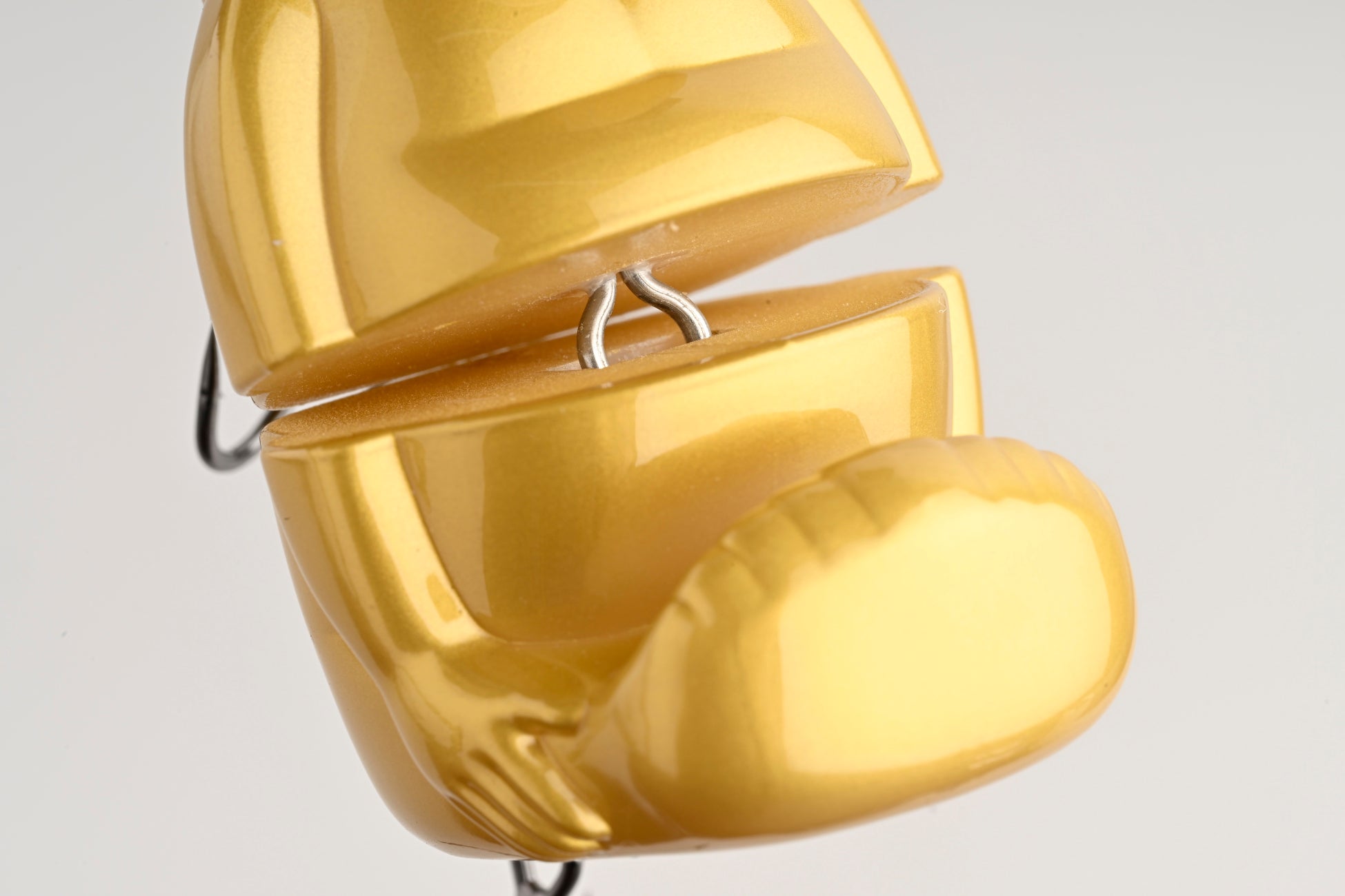 そのユーモラスな見た目から“観賞用”、“キワモノ”といった第一印象を持ちますが、実際にはルアーとして高い性能を備えています。奥村氏による度重なるテストを経て、最終製品版では高強度・高浮力のボーン素材を採用。後述するルアーの性能を最大限に引き出した設計で、ブラックバス、スモールマウスバスはもちろん、シーバスやクロダイ、ナマズ、ブラウントラウト、イトウ、はたまた沖のビッグターゲットまで幅広い魚種をターゲットに見据えています。