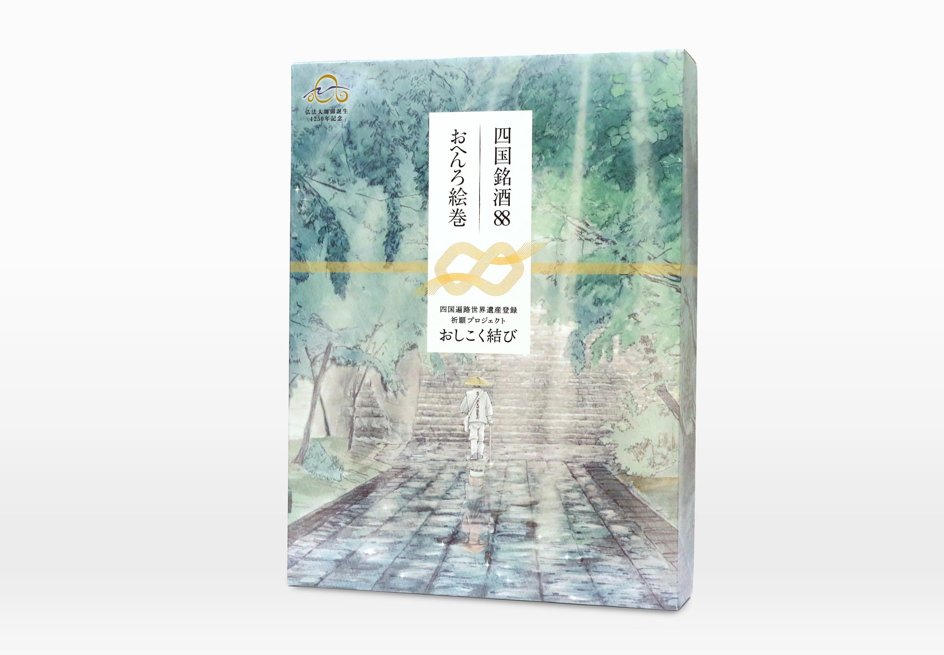 弘法大師御誕生1250年記念「四国銘酒88 おへんろ絵巻」第二弾は、四国4県の50の酒蔵から自慢の日本酒を集め、世界遺産登録を祈願した88本の家呑みセットを頒布会形式で11回に分けてお送りするものです。
