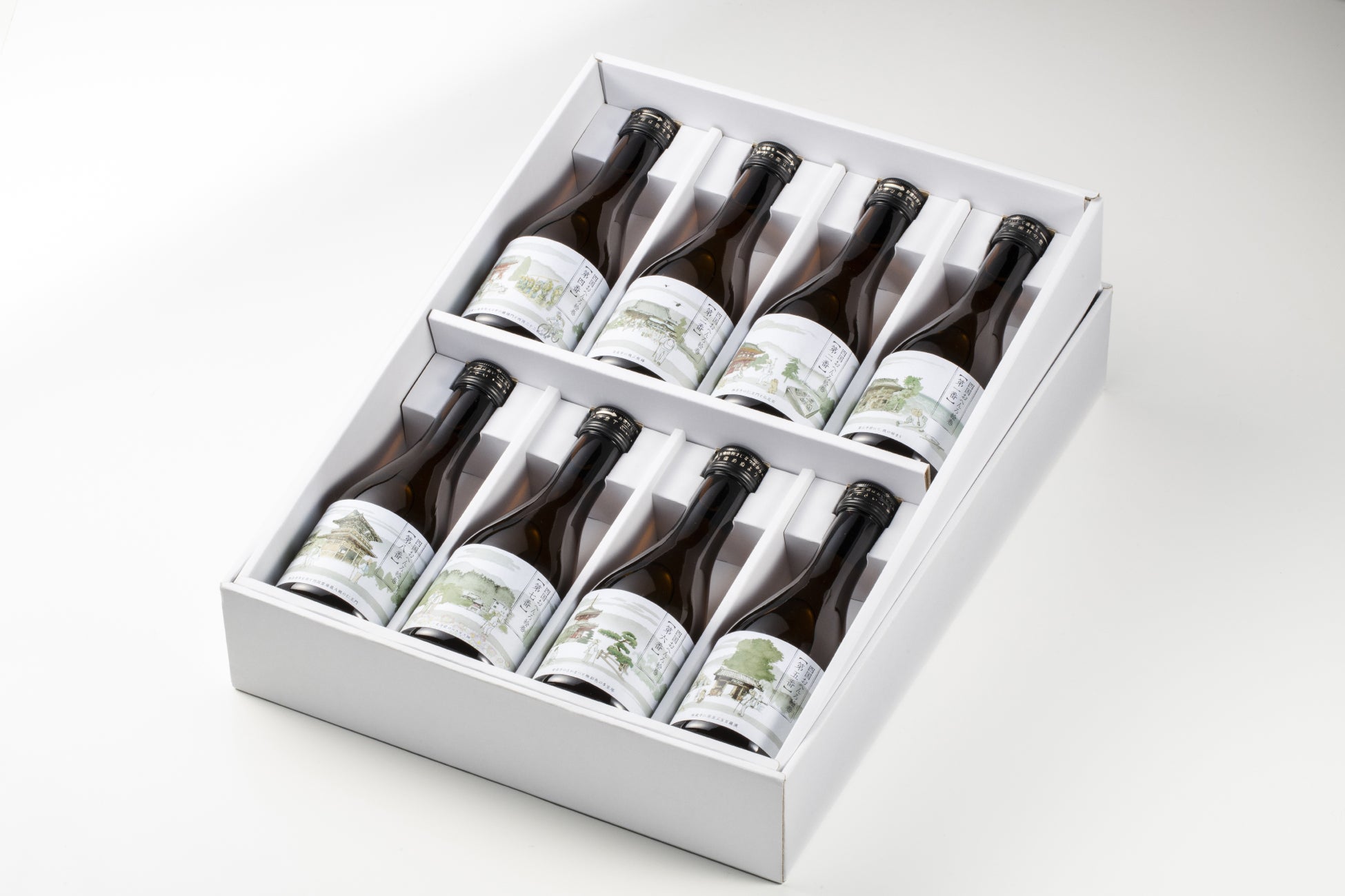 毎月1回、札所の順番に銘酒を8本ずつ、化粧箱に入れて送付します