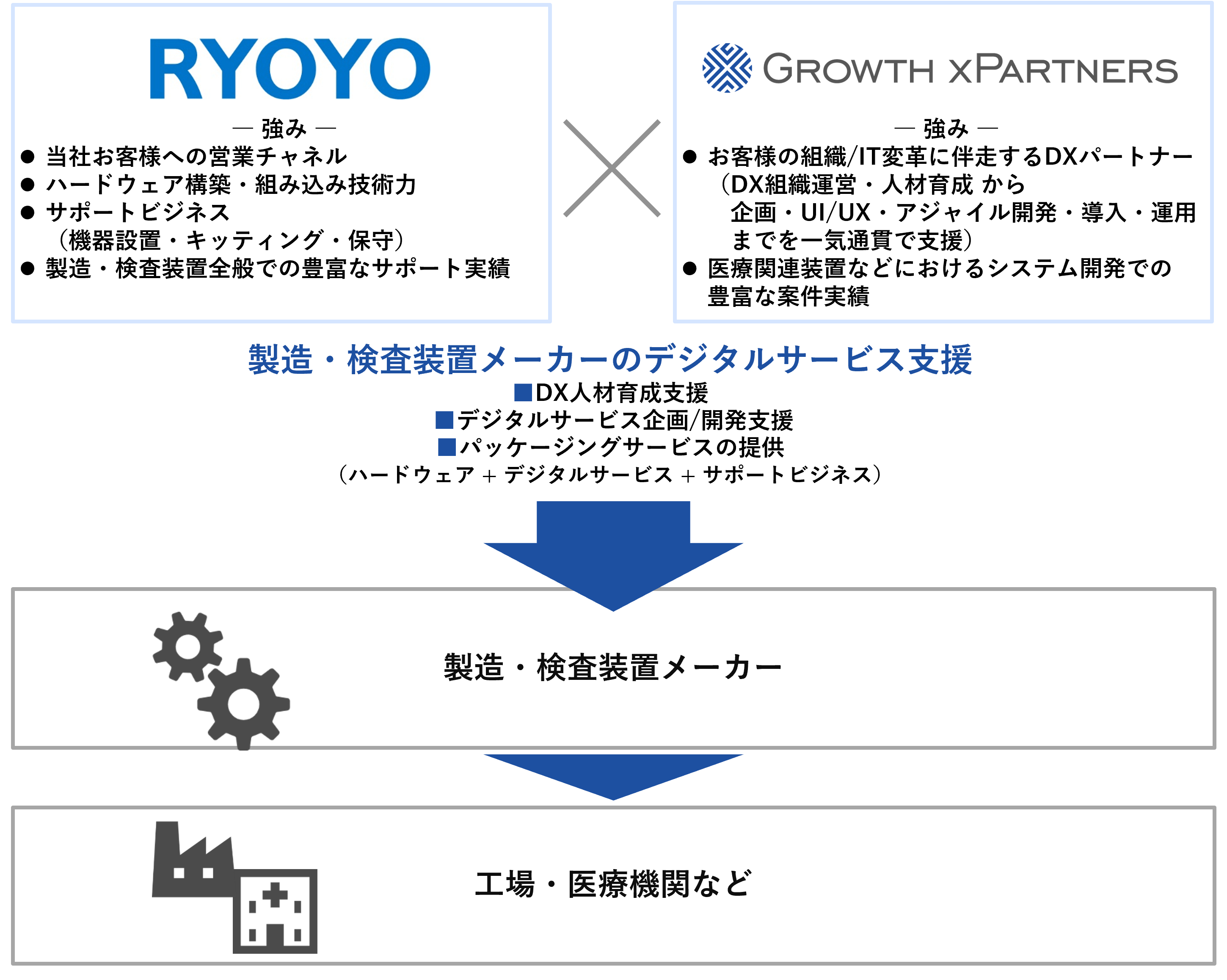 エレクトロニクス商社の菱洋エレクトロ株式会社(本社:東京都中央区、代表取締役社長執行役員 中村 守孝、以下「菱洋エレクトロ」)と、 DX推進支援事業を手掛けるグロースエクスパートナーズ株式会社(本社:東京都新宿区、代表取締役社長 渡邉 伸一、以下「グロースエクスパートナーズ」)は、製造・検査装置メーカー向けの新たなデジタルサービス創出を目的に、資本業務提携(以下「本提携」)を開始いたします。