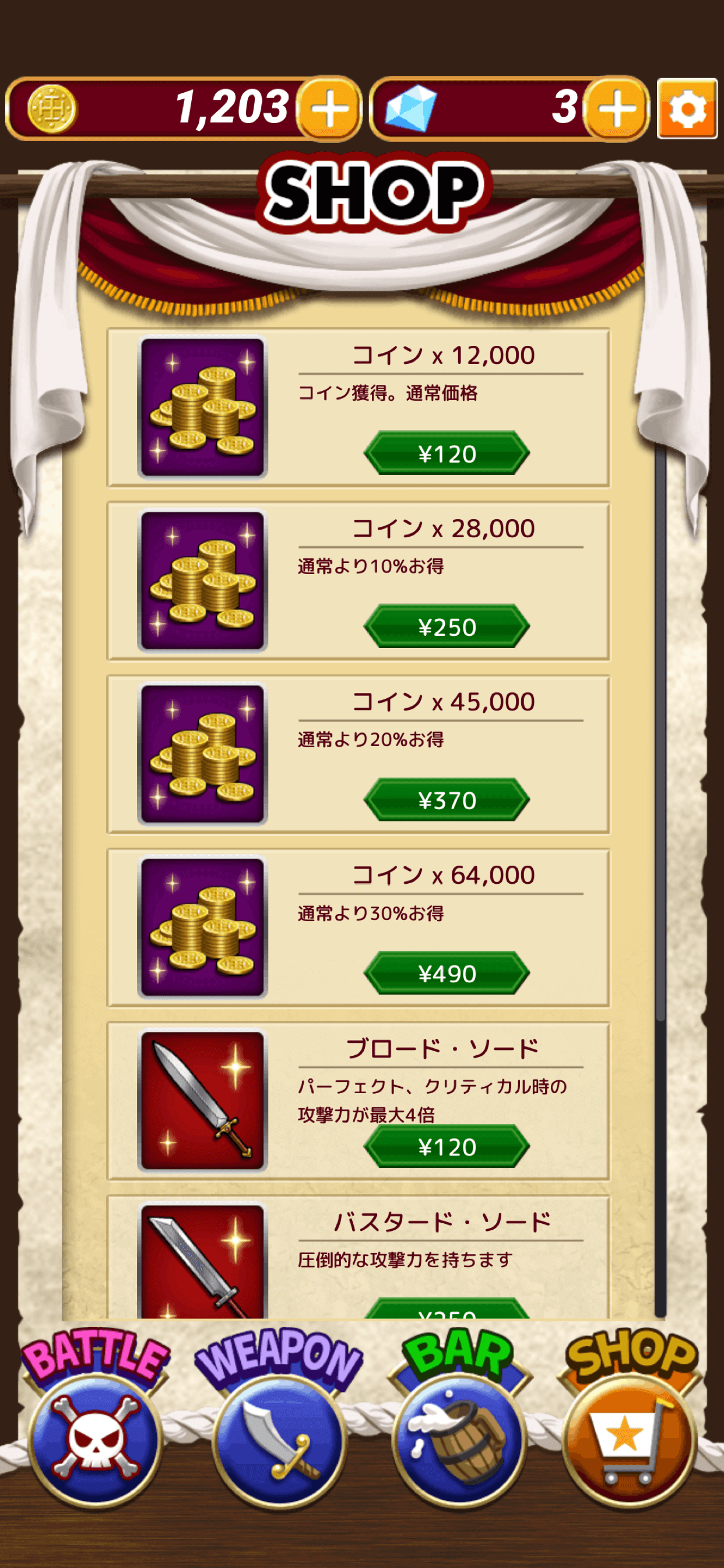 「バトル・オブ・ザ・パイレーツ」は、海賊船の砲弾を打ち返す、かんたん操作で楽しい「アクションゲーム」です。武器を新しくしたりレベルアップすることで強くなり、ステージを進めていきます。