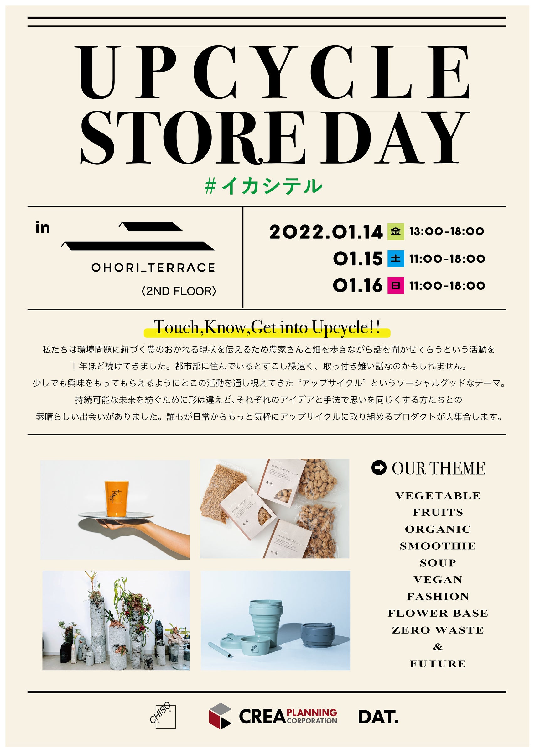 D2Cブランド/CHISO-馳走- "アップサイクル"をテーマに期間限定イベント「Upcycle Store Day」を福岡/大濠テラスで2022年1月14-16日に開催決定!