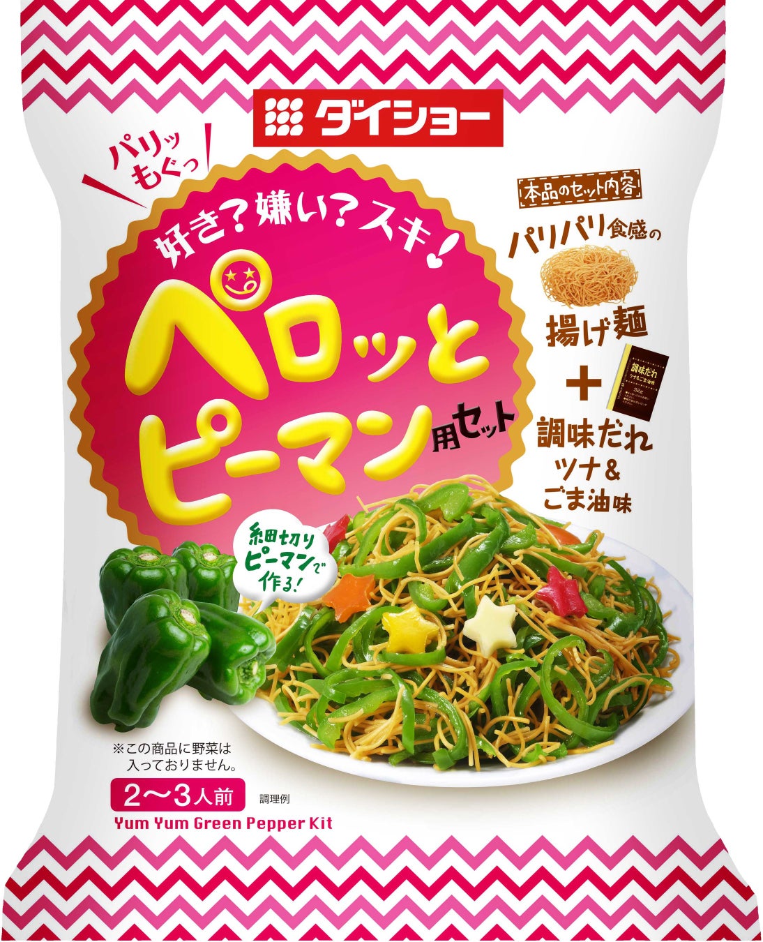 パリパリ食感が特徴の揚げ麺と、ツナ・コンソメの旨みにごま油の風味を効かせた調味だれをセットにしました。香ばしい麺の食感と風味豊かな調味だれで、ピーマンがペロッと食べられる一品が出来上がります。