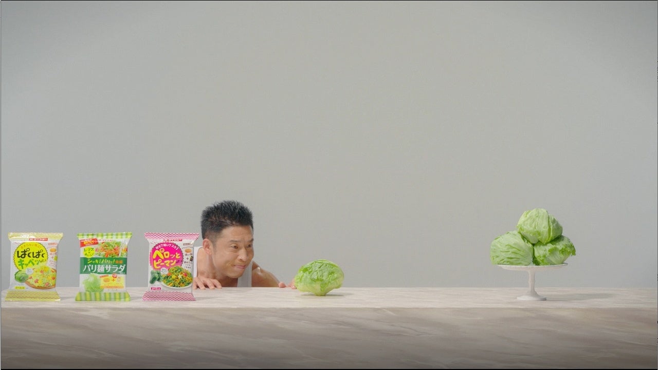 なかやまきんに君が、「おい、俺のレタス!パリ麺サラダで食べられたいのかい、食べられたくないのかい、どっちなんだい!?」とテレパシーを使ってレタスに問い掛けるCM。問い掛けに対して反応のないレタスに対して、「やい、やい、やい、やーっ!」とレタスを真っ二つに割ってしまうなかやまきんに君を表現。なかやまきんに君のパワーが炸裂したCMに。