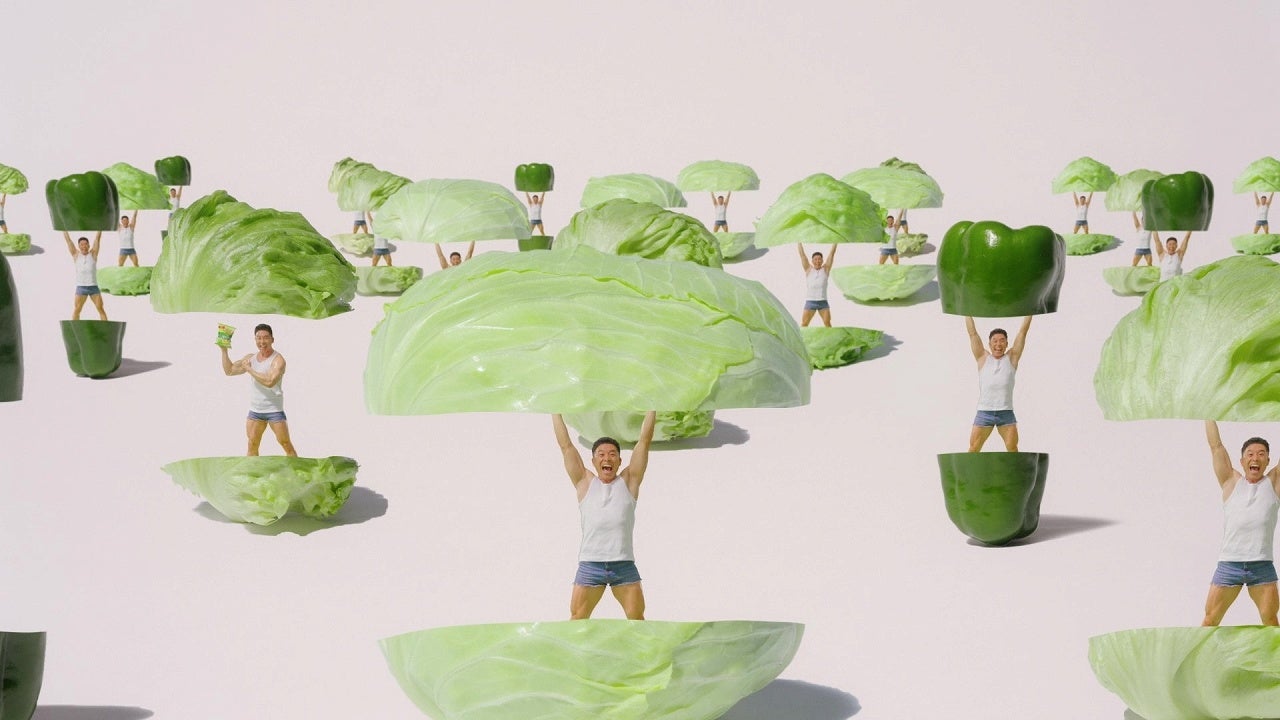今回撮影したCMは計3タイプ。なかやまきんに君持ち前の筋力を使って、レタスを真っ二つに割るシーンが印象的なメイキング撮影となりました。「やーっ!」と叫びながらレタスを割るシーンでは、撮影スタッフも爆笑しながら見守りつつ、割り方が美しく「キレ~イ!」といった感心する声もこぼれていました。