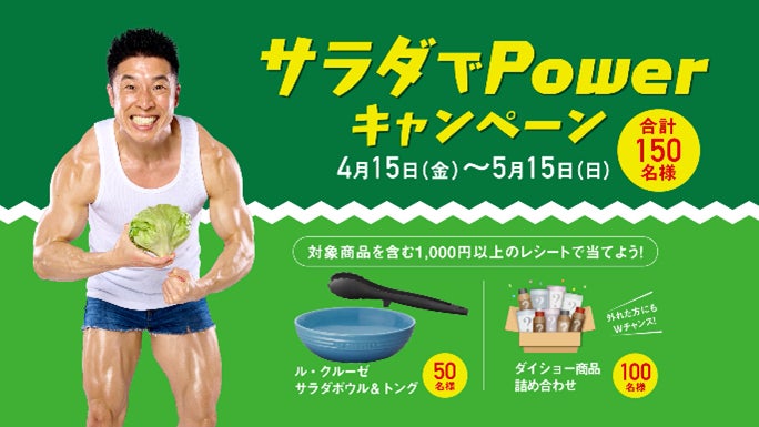 対象商品のいずれかを含む1,000円以上お買い上げのレシート画像をお送り頂いた方の中から、抽選で「サラダが食べたくなる賞品」が当たるキャンペーンを実施いたします。