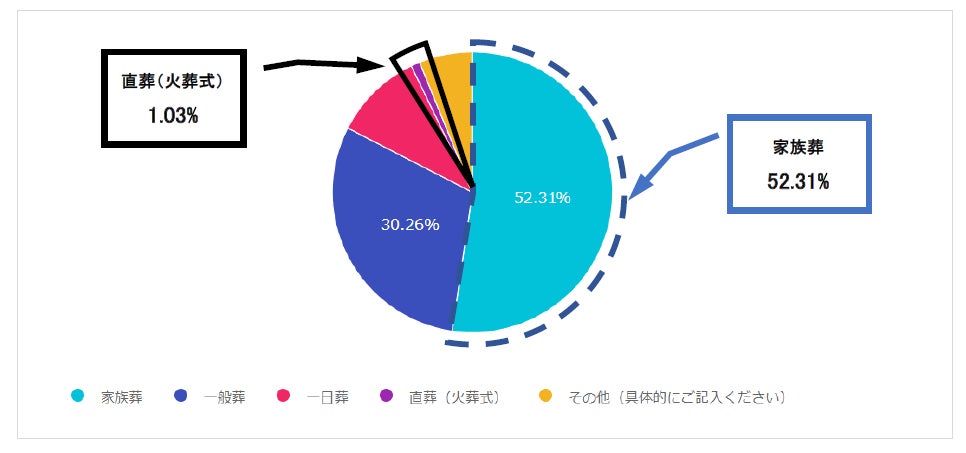 ② 親御様やご親族の葬儀は、家族葬を選ぶ人が52.31%。直葬(火葬式)は、1.03%。