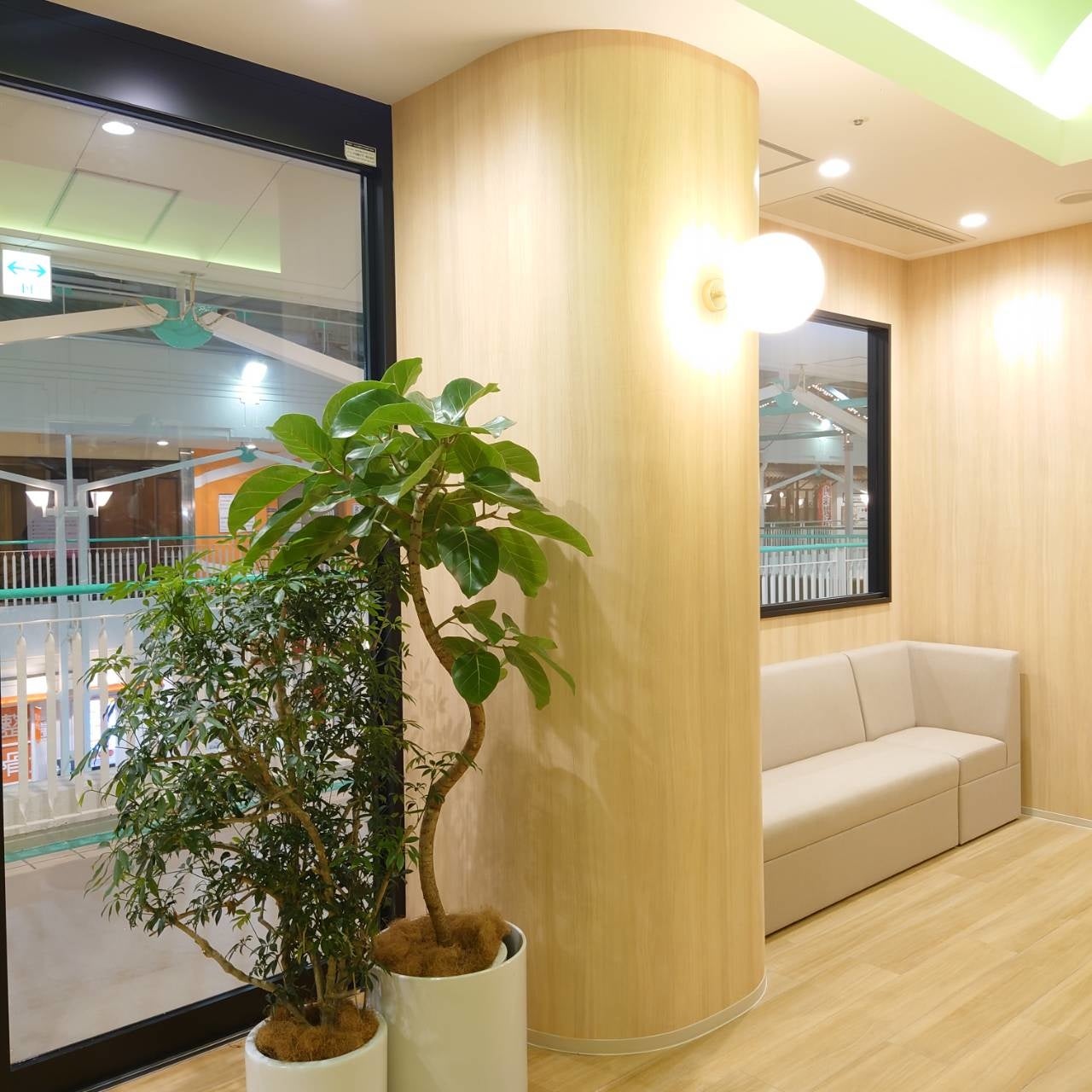 クリニックは緑と木目調を基調とした落ち着く空間です。