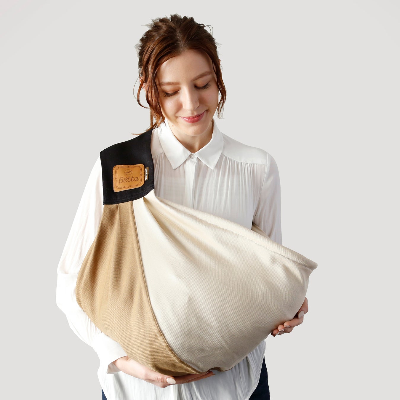 2003年の発売以来、軽量コンパクト・かんたん装着をコンセプトに、これまで肩紐にファスナーでの調節機能を追加したり、より安全に使用できるようにロック機能付きのファスナーを採用するなど進化を遂げてきたベッタのベビースリング。 新生児から使用できるのも大きなポイントです。ベッタ独自の立体裁断は、赤ちゃんがすっぽり包める大きめサイズです。底が丸くなっているので、赤ちゃんが動いても安定感のある抱っこができます。日本の職人が1枚1枚丁寧に作った安心安全のベビースリングです。