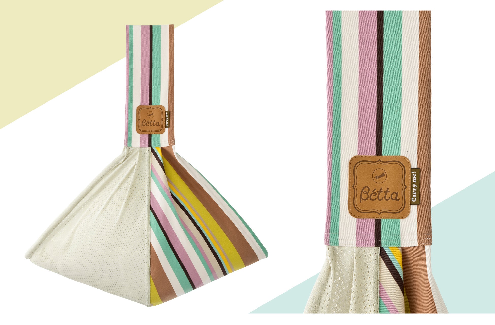 新生児から使える、軽量・コンパクトなスリング「ベッタ キャリーミー!」。袋の片側がメッシュ素材でより快適に抱っこできるメッシュタイプにデザイナーテキスタイルを採用した限定柄を4/26に発売いたします。