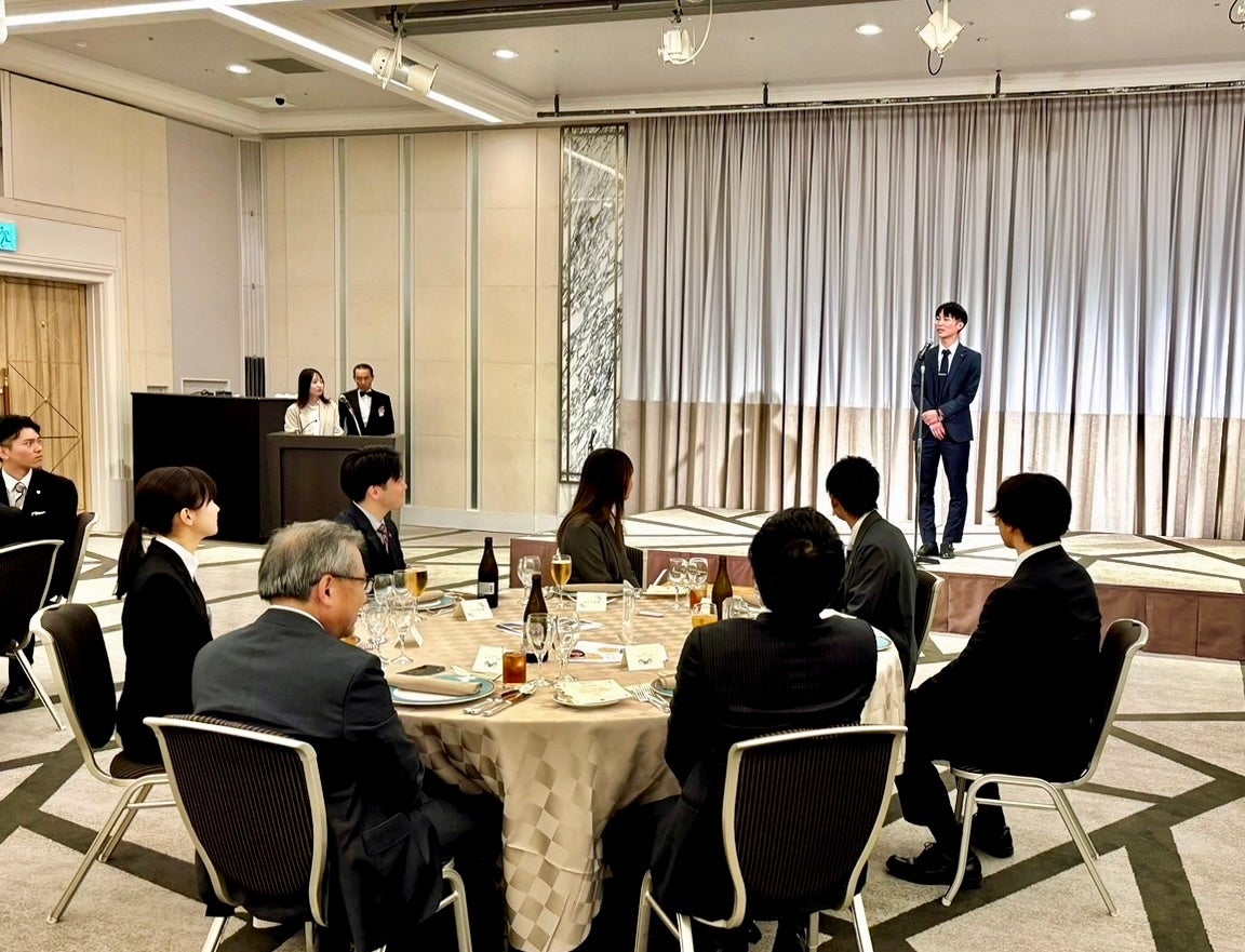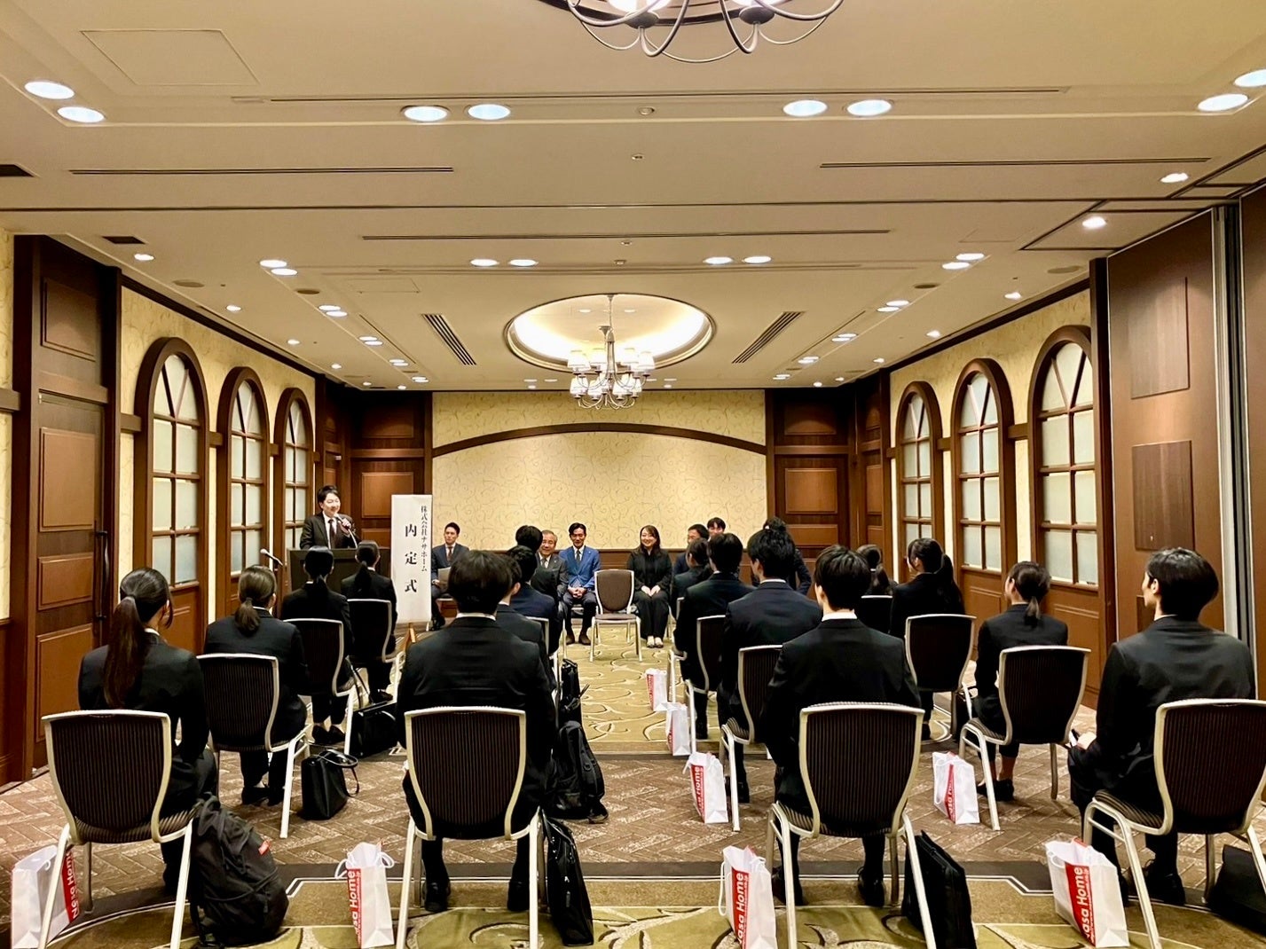 式の締めくくりには、内定者代表による答辞が行われ、社会人としての決意や感謝の思いが込められた言葉に、会場全体が温かな拍手に包まれました。