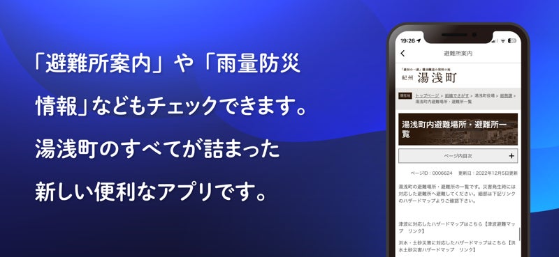 FMラジオ局J-WAVEのIT関連会社であり、自治体アプリを通じて地方自治体のデジタル田園都市構想やDX、防災対策を住民コミュニケーションの面で支援するソリューションを手がける株式会社J-WAVE i(代表取締役社長:小向国靖)が、和歌山県有田郡湯浅町に、新たな公式防災アプリ「ゆあさポート」の提供を開始いたしました。