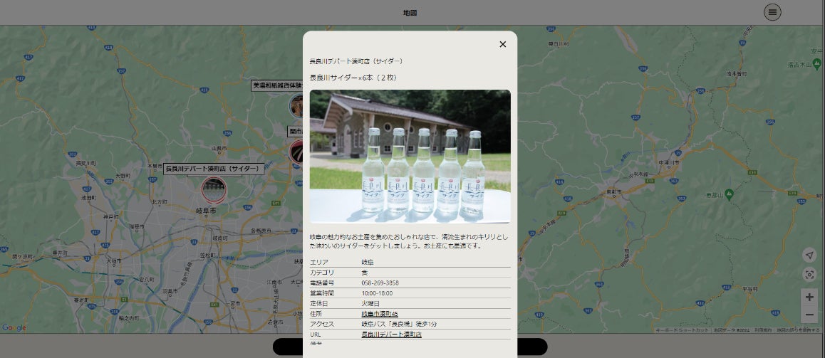 体験チケットを使用できる施設の情報を掲載しています。また、施設をマップ上で表示することができます。