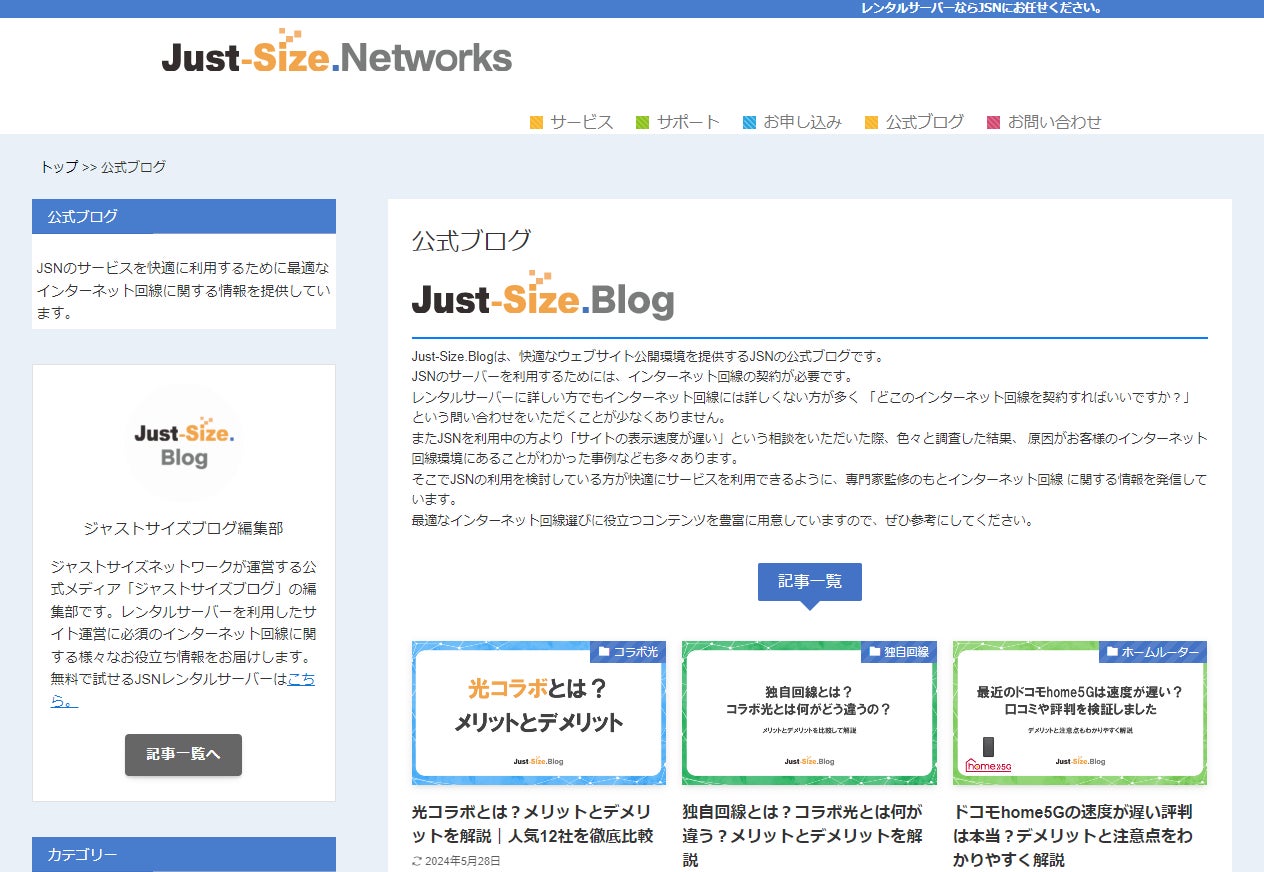 「ジャストサイズブログ」は、インターネット回線に関する情報を提供する総合サイトです。