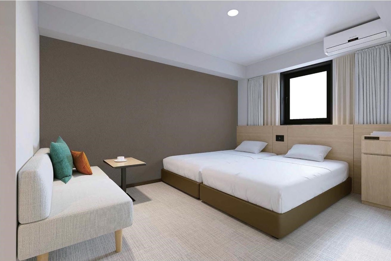 本ホテルは2024年1月まで運営していたビジネスホテルを閉業し、既存設備を活用しながら客室レイアウトの変更、ロビー・レストランエリアの改修、敷地内にプールやキッズエリア(芝生)増設等を行い、リゾート滞在型の宿泊施設にリニューアルすることでファミリーなどのレジャー需要を呼び込む新しい施設にリブランドいたします。