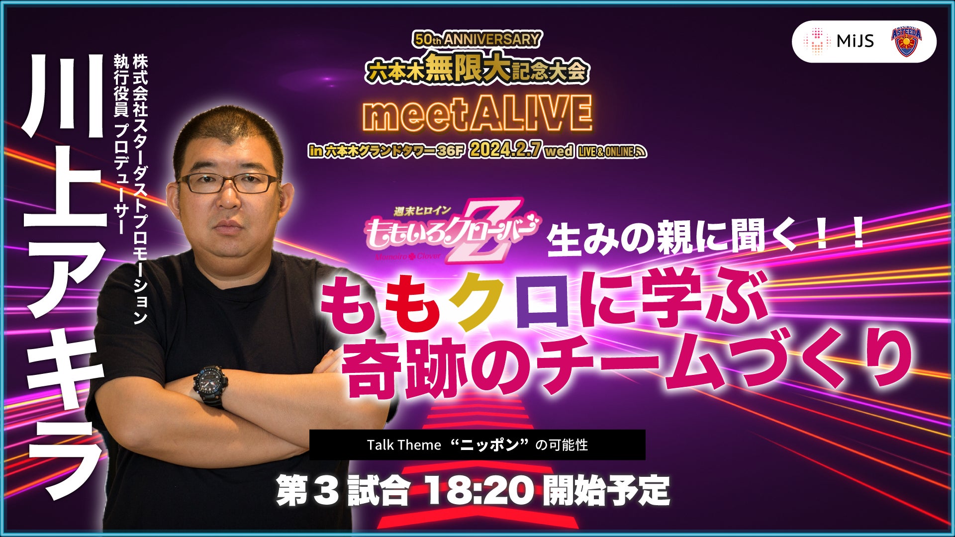 ももクロ生みの親!川上アキラ氏 登壇決定!meetALIVEと琉球アスティーダが共催し、未来を照らすテクノロジーとスポーツ・エンターテインメントの融合イベント「六本木無限大記念大会」開催決定!