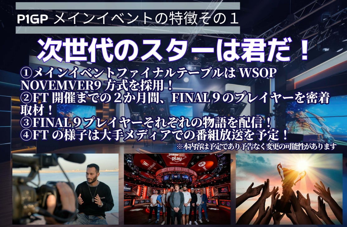 また、9名のプレイヤーには決勝戦までの期間を密着取材し、その様子もドキュメンタリー番組として配信を行うなどポーカー界を担う次世代のスターを排出していく。