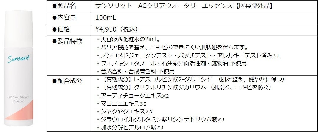 医療機関で取り扱われるスキンケアブランド「サンソリット」からニキビ肌向けスキンケアシリーズが新登場!「ACクリアシリーズ」5月10日(火) 2品同時発売!