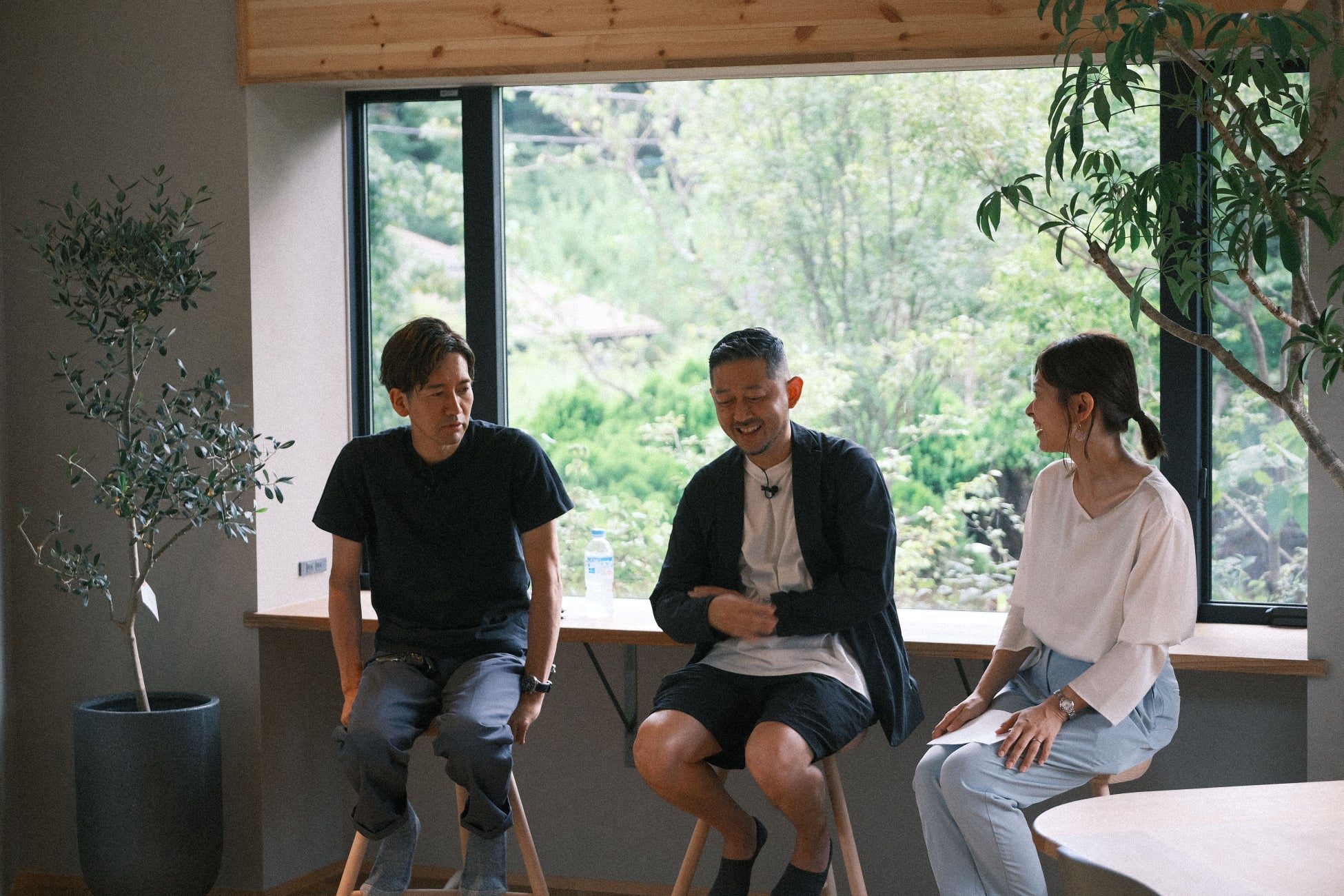 コロナ禍で在宅ワークが浸透。場所を選ばず働くことが可能になり、移住や二拠点生活を検討する人も増えている現状から、以前より二拠点生活を実践されているコピーライターの渡辺潤平氏、プロジェクトデザイナーの津田賀央氏をお招きし、代表の村本がファシリテーターを務めトークイベントを開催。施設現地には北杜市内で事業を営む方々も参加され、その模様はオンラインでも配信を行いました。