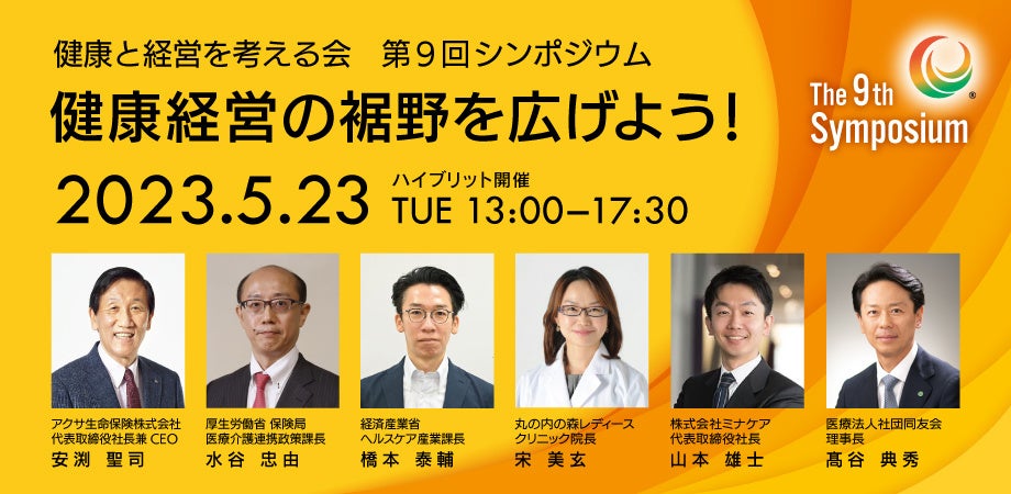 一般社団法人健康と経営を考える会は、2023年5月23日(火)にハイブリッド開催(東京都港区ニッショーホール・Zoom Webinar)で第9回健康と経営を考える会シンポジウム「健康経営の裾野を広げよう!」を開催いたします。