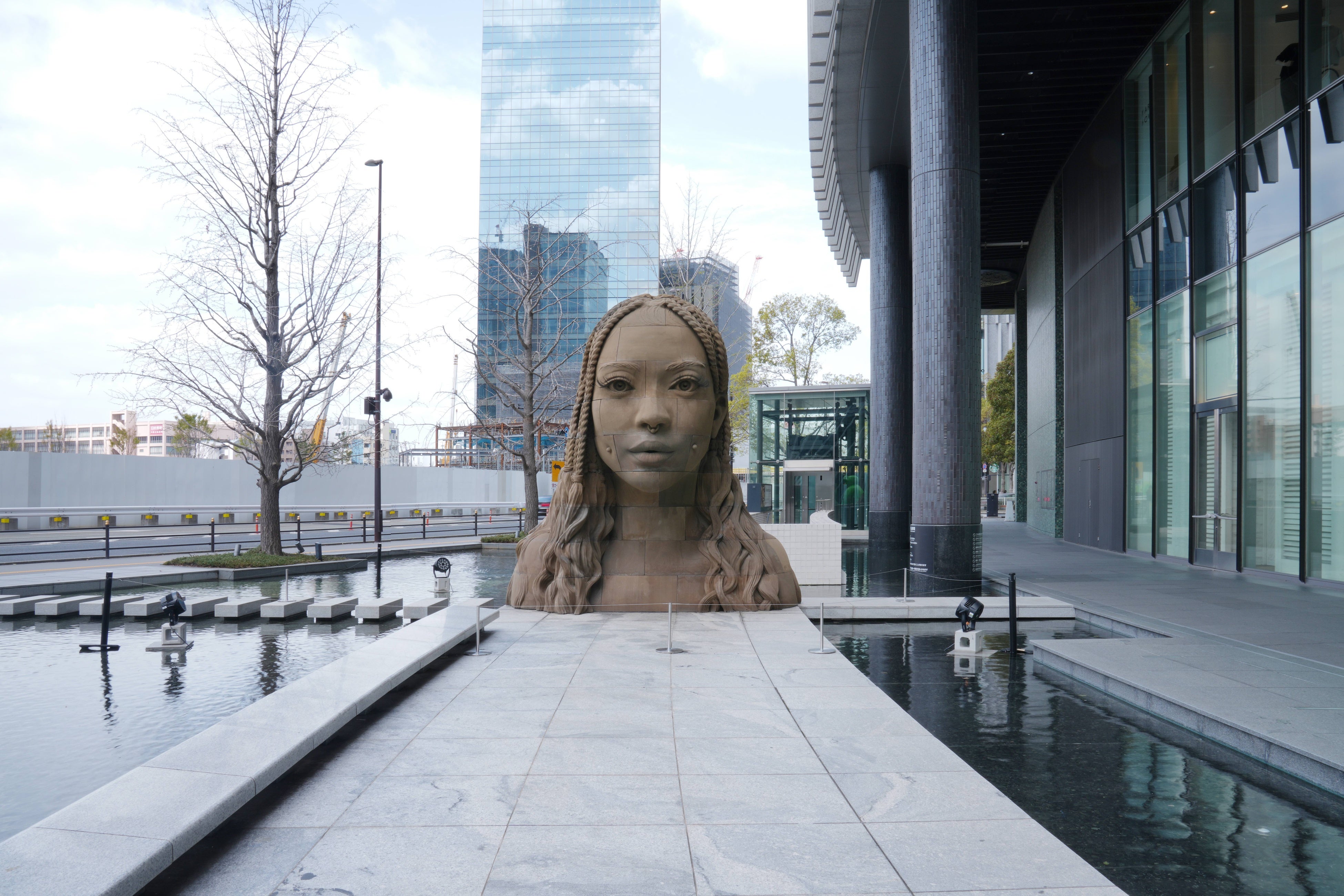 この度、第5弾として新たな作品を2点、本日より展示開始いたします。南館せせらぎテラスには、アーティスト:R E M A本人のセルフイメージを使用したオブジェ作品を展示。立体造形物を制作するFES株式会社協力のもと、CGモデリングデータを元に、砂型3Dプリンターの応用により制作されました。