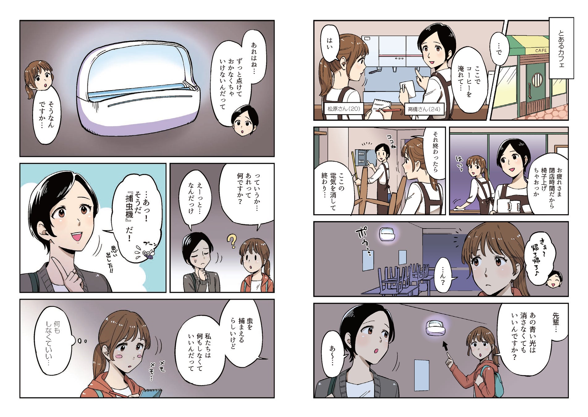 好む波長の紫外線光を乱反射させ捕獲する捕虫機です。その高い捕獲力は他社製LED捕虫器と比べて8.4倍。