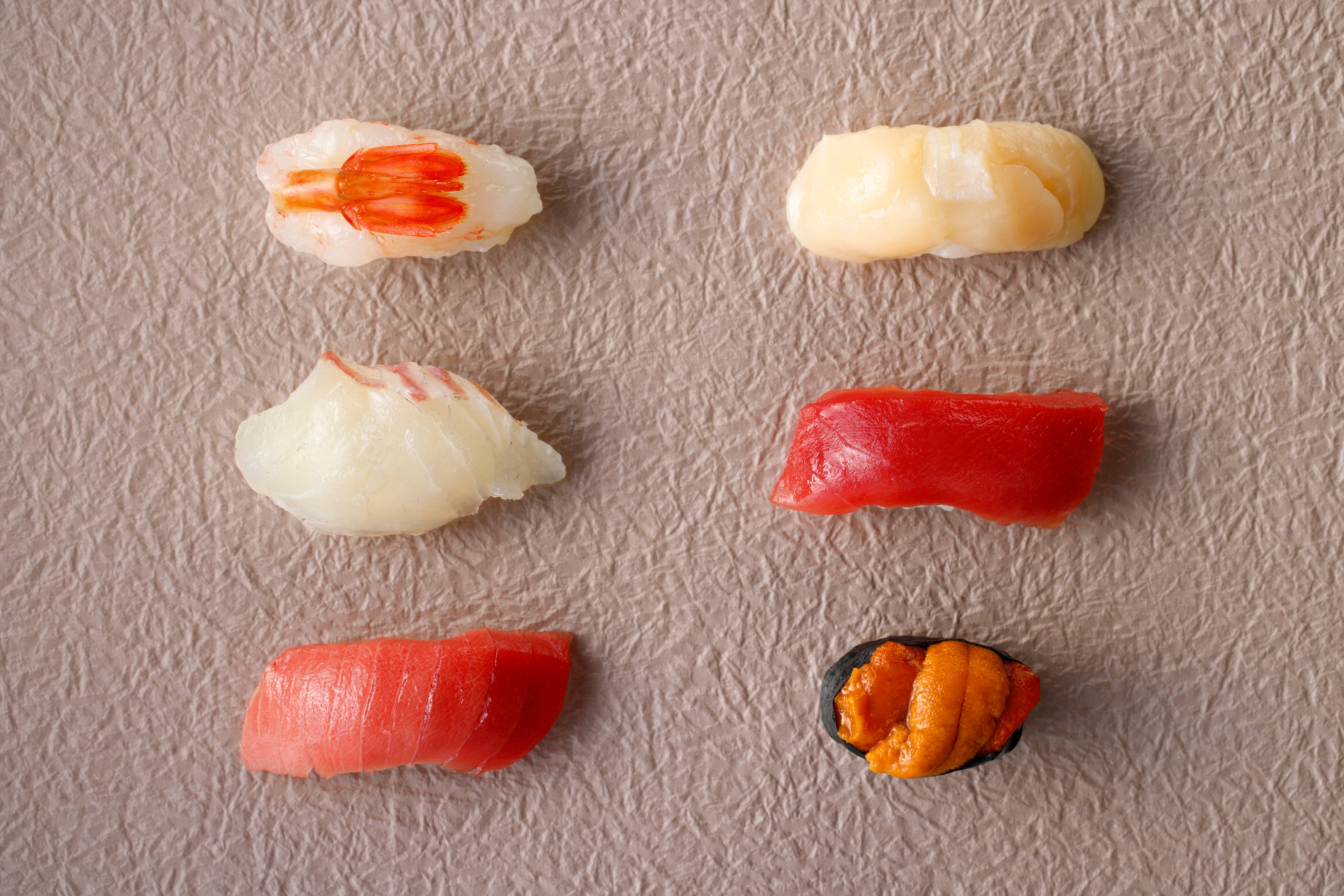 ■内 容 量 : 6貫1パック<本鮪(中トロ)、本鮪(赤身)、ウニ、真鯛、ホタテ、海老>