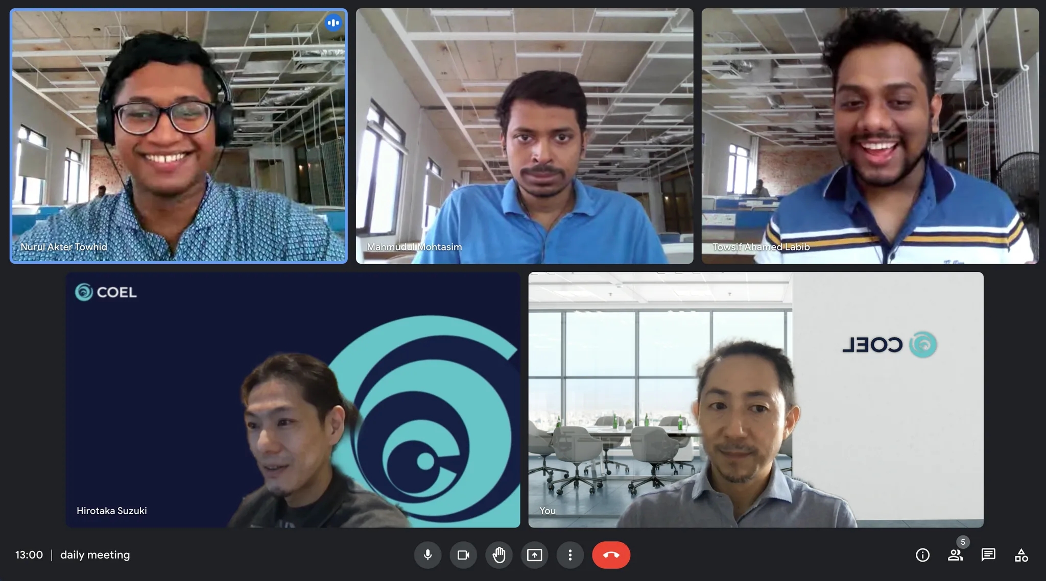 現在、4名のデータサイエンティストチームがバングラデシュから勤務しています。プロダクトのアルゴリズムが磨かれてきており今後はプロダクト化を進めていく段階に入ります。その時は、フロントエンドやサーバサイドなどの役割も必要になってきますので、バングラデシュ現地チームを拡大していきたいと思っています。将来的に、現地に開発拠点を構えることも視野に入れています。』