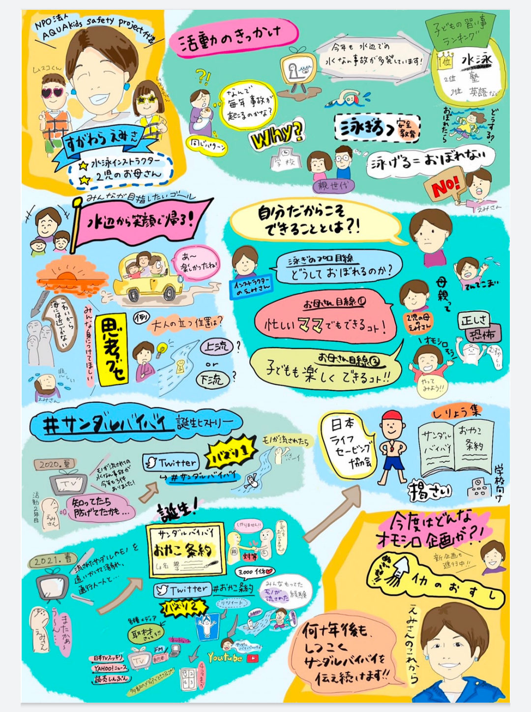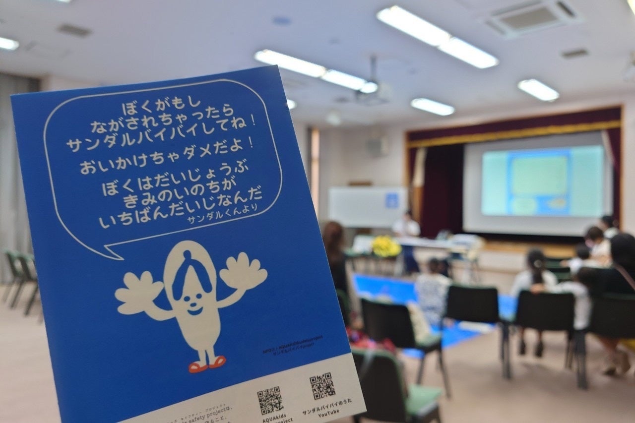 【今後の展望】「サンダルバイバイ」は、現在、公立小学校でも「水辺の安全授業」として取り上げられており、民間のスイミングスクールでも活用されています。「水難事故予防」の常識として「サンダルバイバイ」を誰もが知る社会にすること、そして「流されたサンダルやモノを追いかけて溺れる水難事故」を1件でも減らすために普及活動を続けていきます。