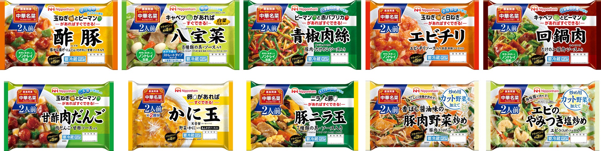 中華名菜は、中華のシェフならではの技を再現した“下ごしらえ済みの具とソース”をパックしたチルド商品です。下ごしらえ済みなので、肉を切ったり揚げたりといった下準備不要で、ご家庭で野菜を加え“仕上げ”をして頂くだけで、おいしくバランスの取れた中華料理を手軽にお楽しみいただけるのはもちろん、炒めるだけの時短調理による家族団らん時間も提供します。