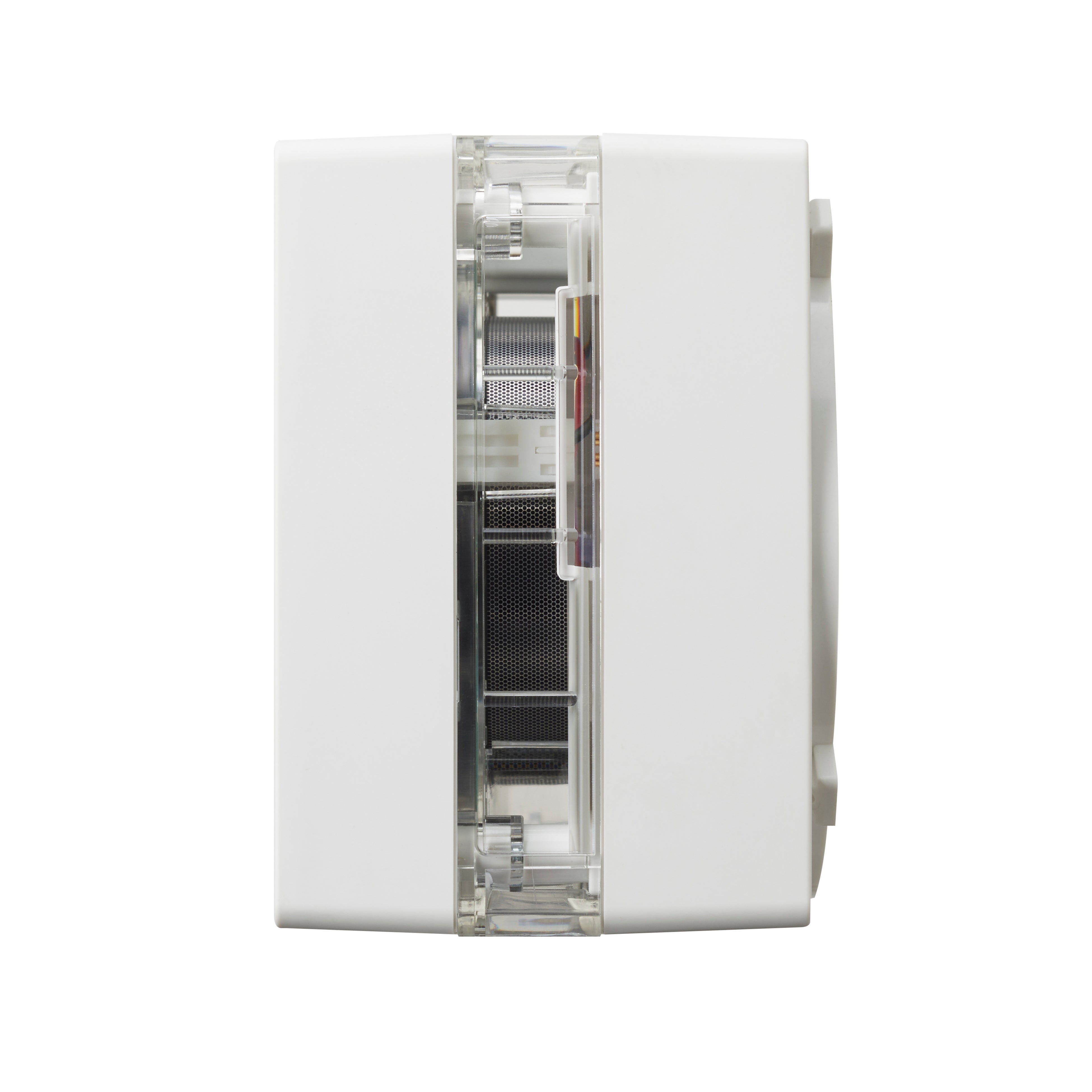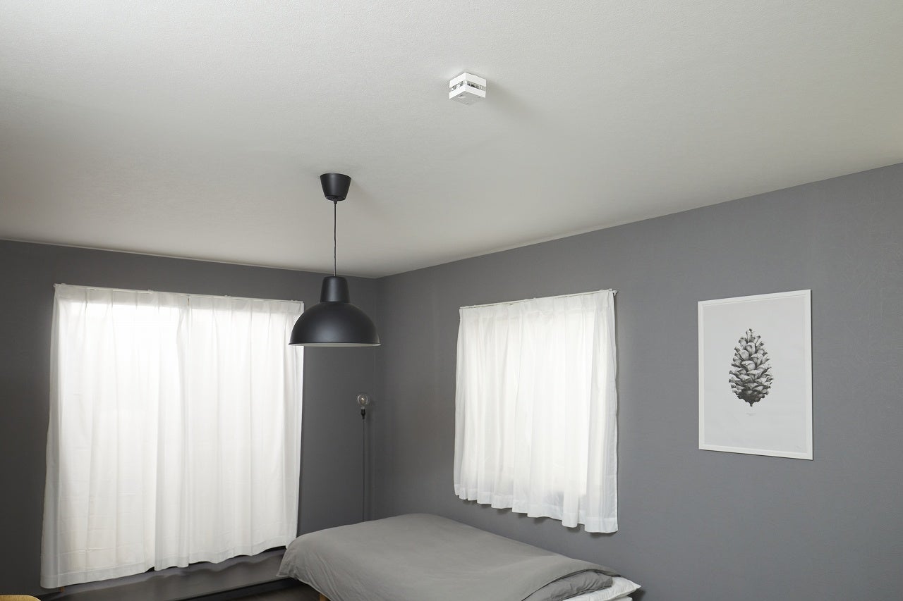 それから何度も改良を重ね、今回発売する「プラシオ」では、一酸化炭素センサを使って火災を従来より早くおしらせする機能が住宅用防災警報器に係る基準の特例により、光電式住宅用防災警報器(CO反応式)として総務大臣に認証されています。また、より多くの方に設置していただけるようシンプルでありながら、火災警報器としては斬新なキューブ型を採用し、現代の住宅に馴染むデザインにしました。