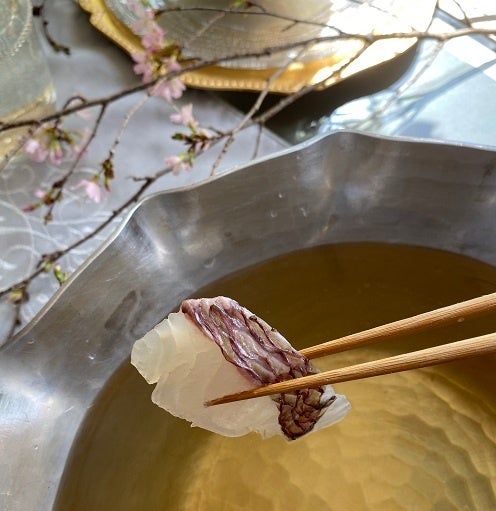 鯛の身の厚さは「人差し指1本分」。厚すぎても薄すぎてもだめ、長年鯛を提供してきた日本料理ぜんさくならではのこだわりの製法です。