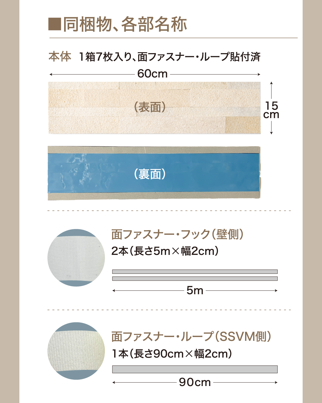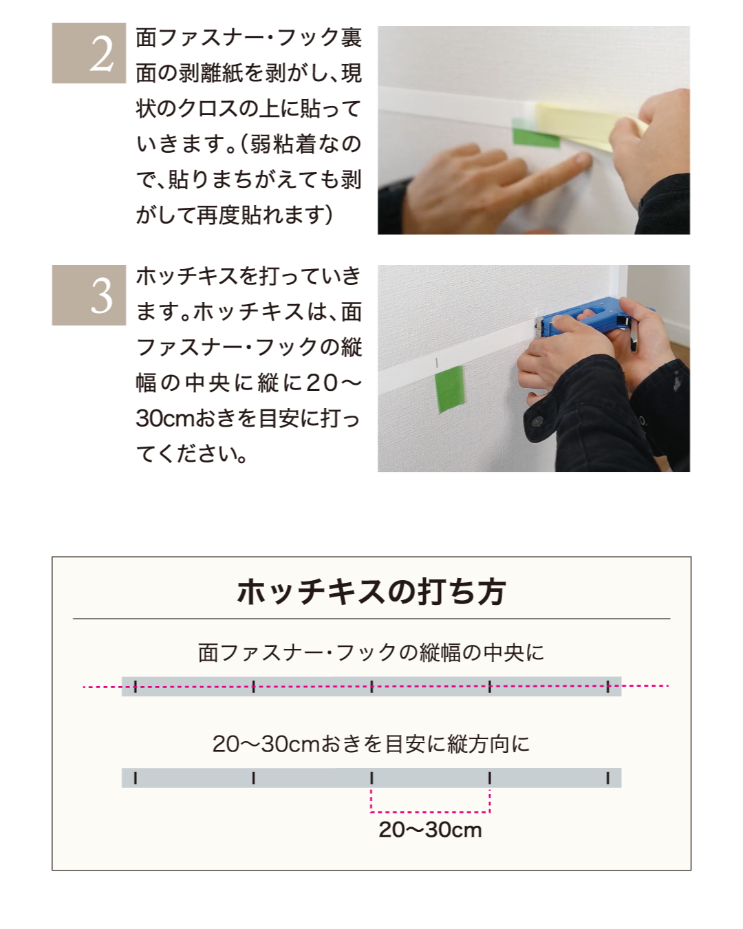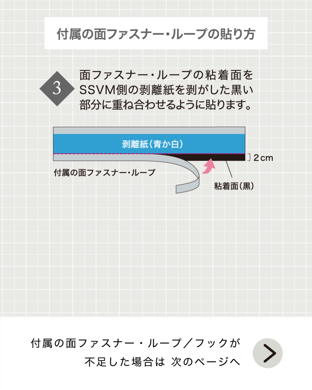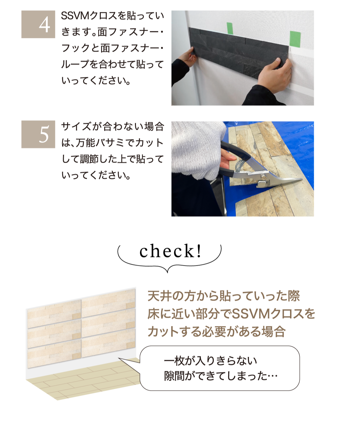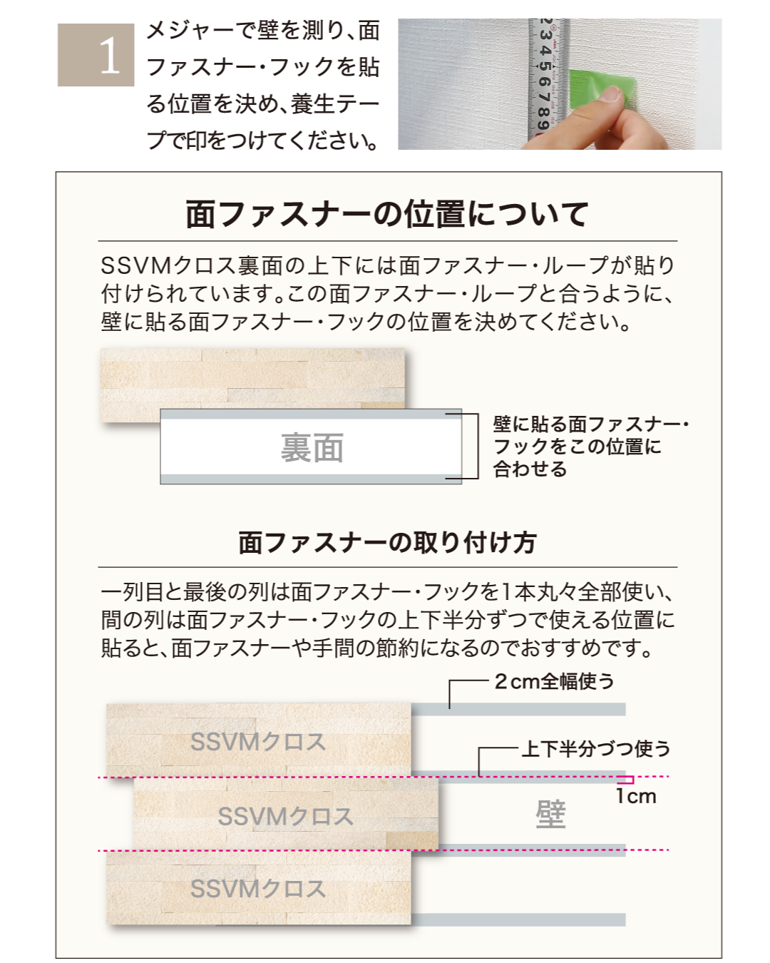 3) クロス上に面ファスナーで施工する場合は SSVMクロス