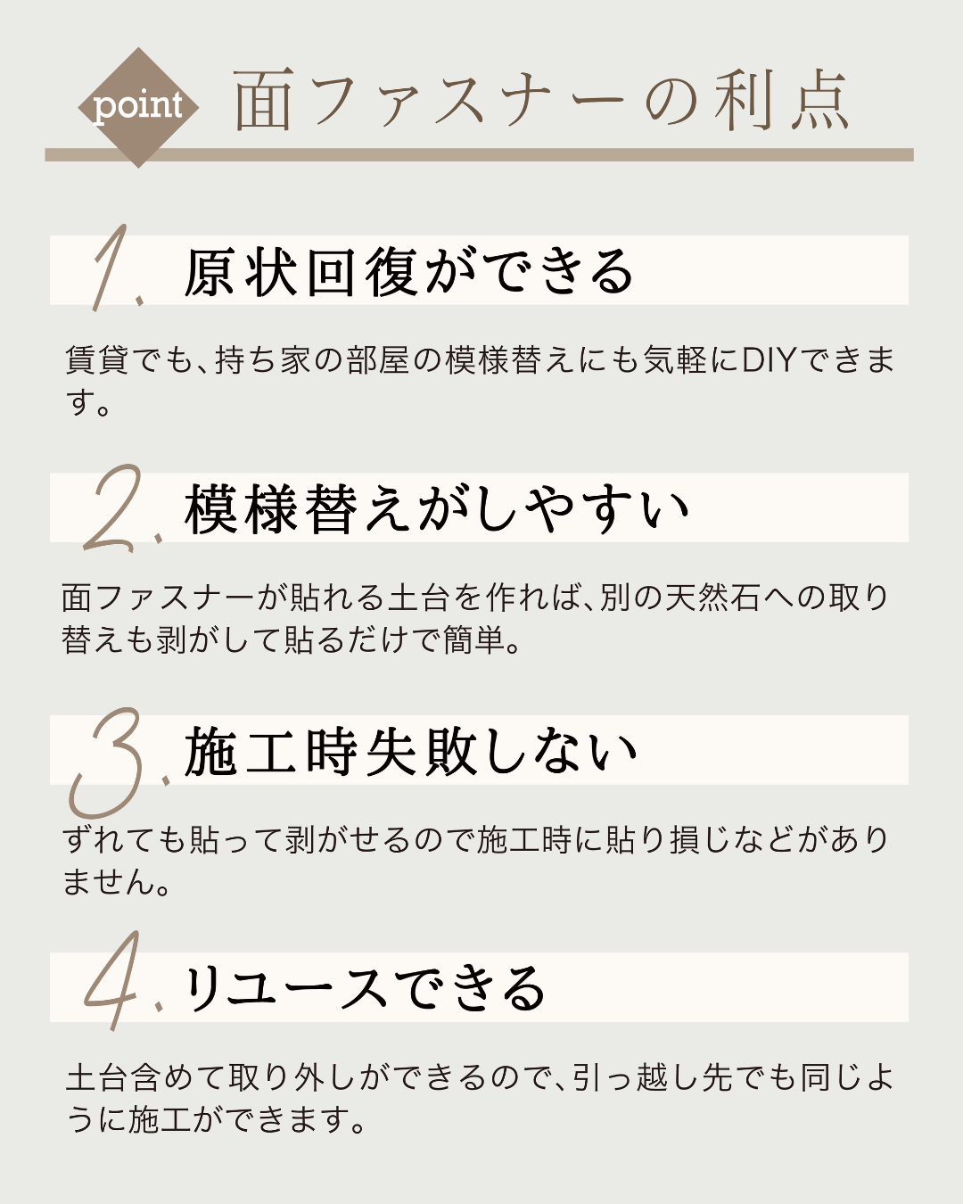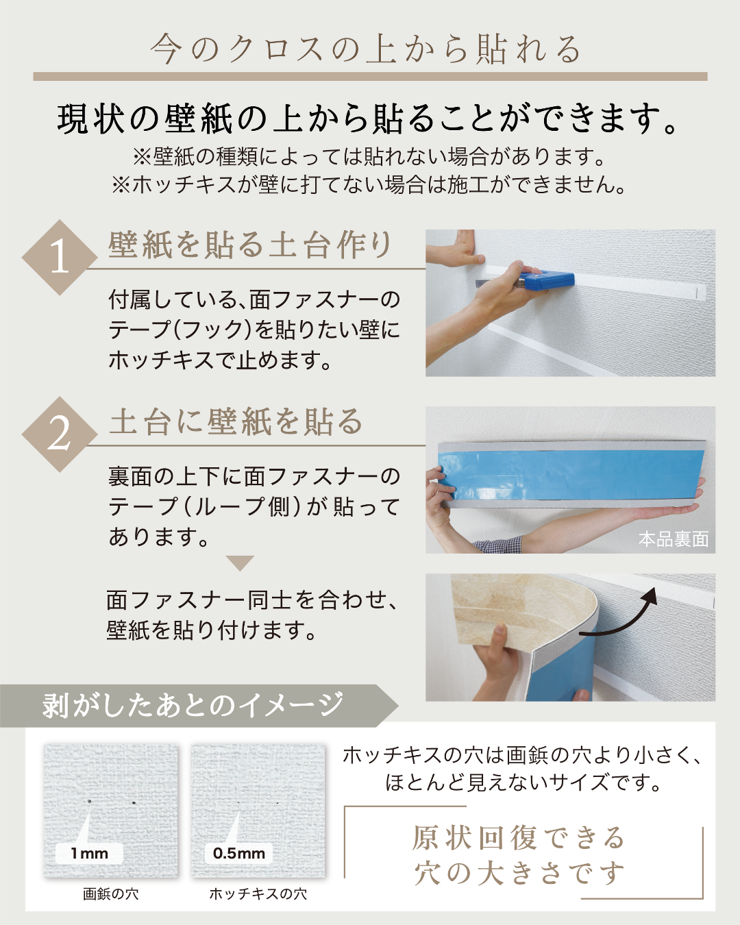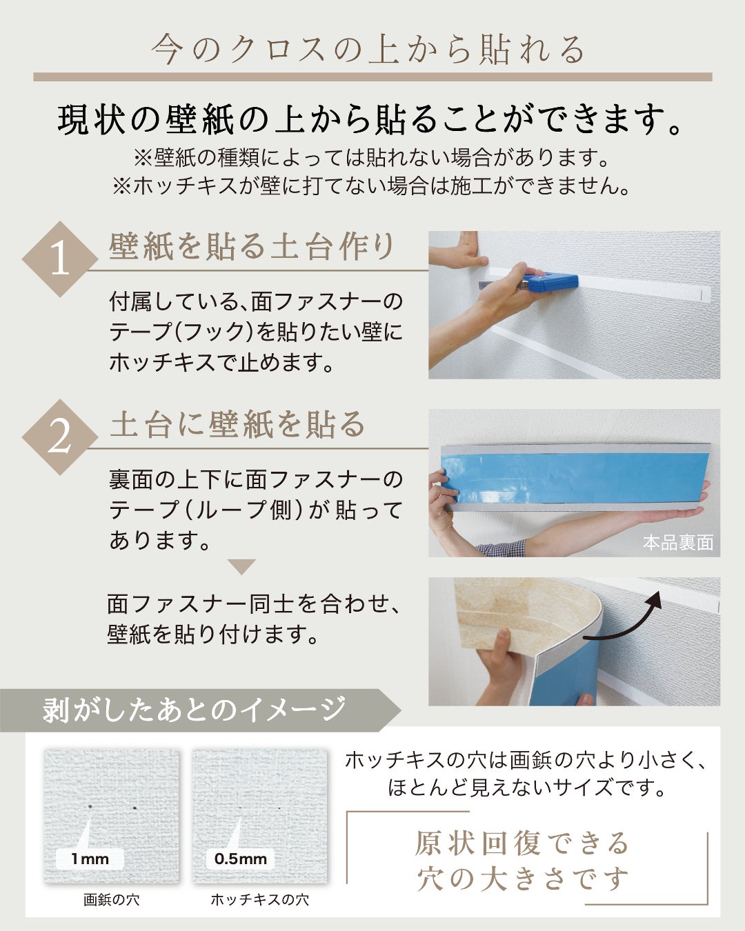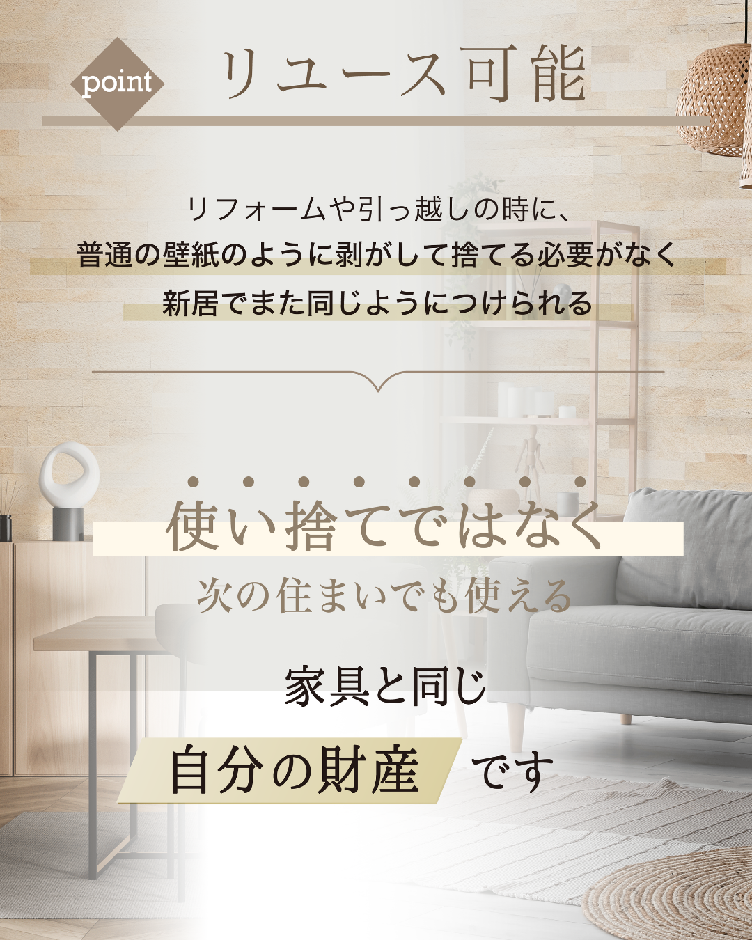 クロス上に貼れる、原状回復可能、転居先で再使用可(リユース)