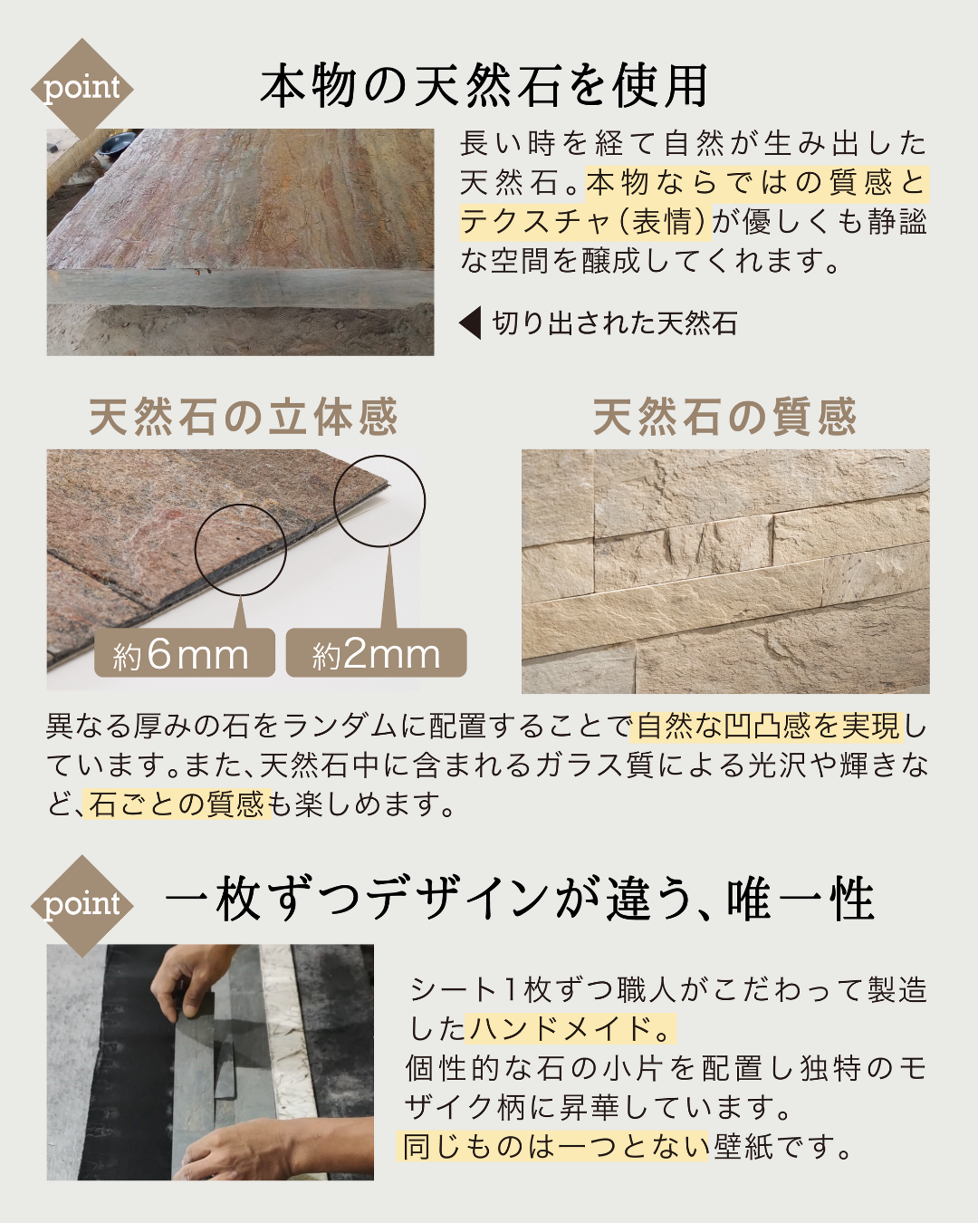 クロスに直貼りできて、原状回復可能な天然石の壁紙 SSVMクロス! いよいよ7/11に楽天市場及びAmazonで販売開始です!!