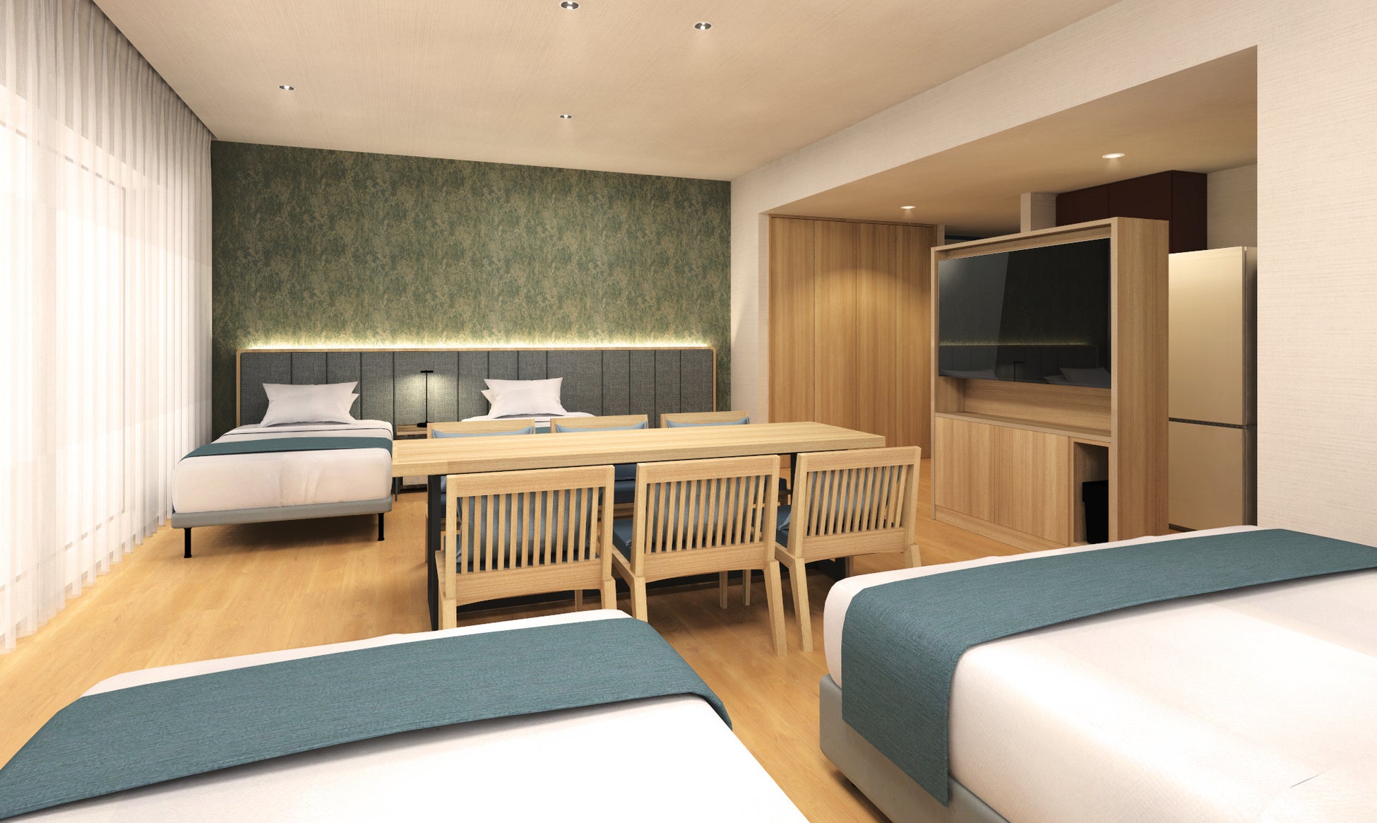 このような状況の中、一部客室のリノベーションにより、多人数でも宿泊可能な客室を増設し、ファミリー需要や、増加傾向にある海外からの三世代家族での旅行など、小グループ需要にも対応できる客室を備えて、更なる「快適な滞在」を演出致します。どうぞご期待ください。